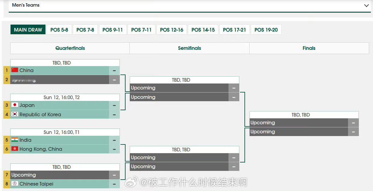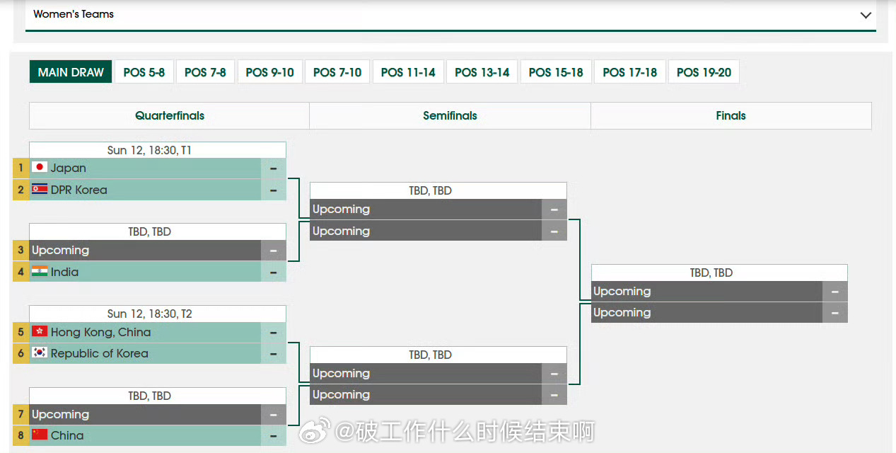 📍【2025亚洲乒乓球团体锦标赛】第二阶段女团对阵