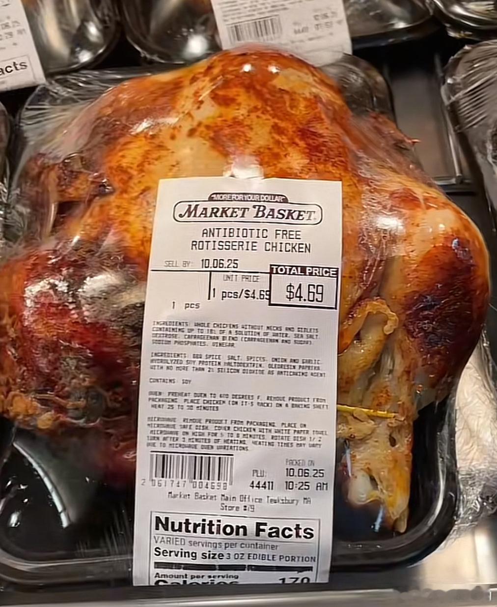超市一整个烤全鸡4.69美元