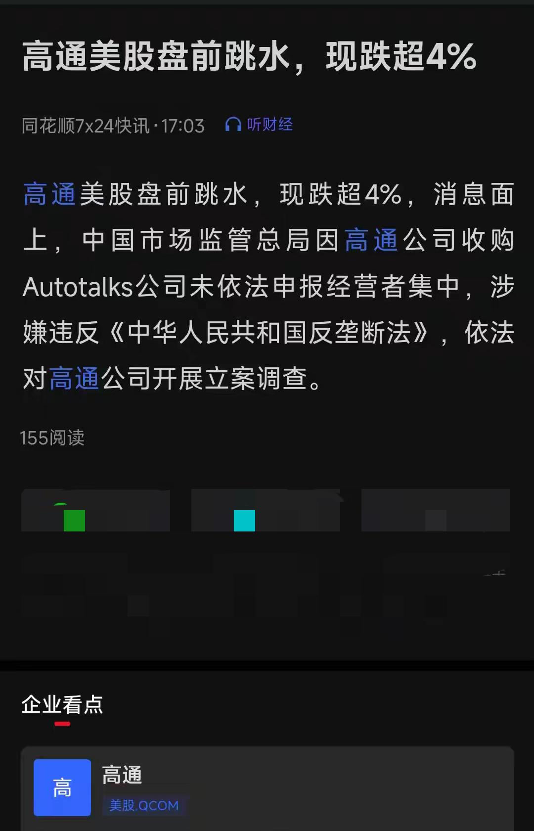 高通这波跳水, 哪是简单的被查? 这分明是咱们对“科技霸权”的又一次硬气回应! 因收购公司未依法申报,市场监管总局一出手立案调查,它股价立马跌超3%,反应快得很。 别觉得这只是反垄断常规操作,2015年就罚过它60亿,现在再出手,就是明确信号:想在咱们地盘搞特殊?门都没有。 这和稀土反制一个道理,不是要硬碰硬,是守住底线护自主。 这个月确实不平静,股市里踩雷风险不小,该减仓就得果断。 但话说回来,这种监管力度,是不是也在给咱们自己的科技企业铺路? 你们觉得接下来还会有哪些巨头被盯上?
