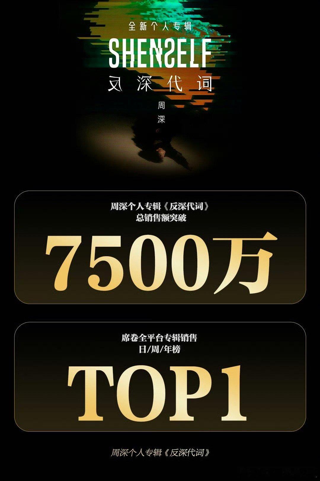 周深《反深代词》数字专辑销售额破7500万🎉席卷全平台专辑销量周榜月榜年榜​
