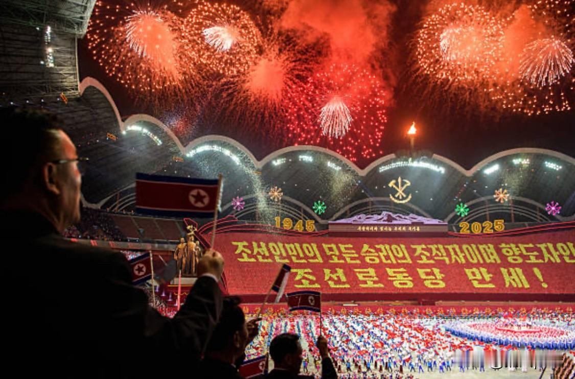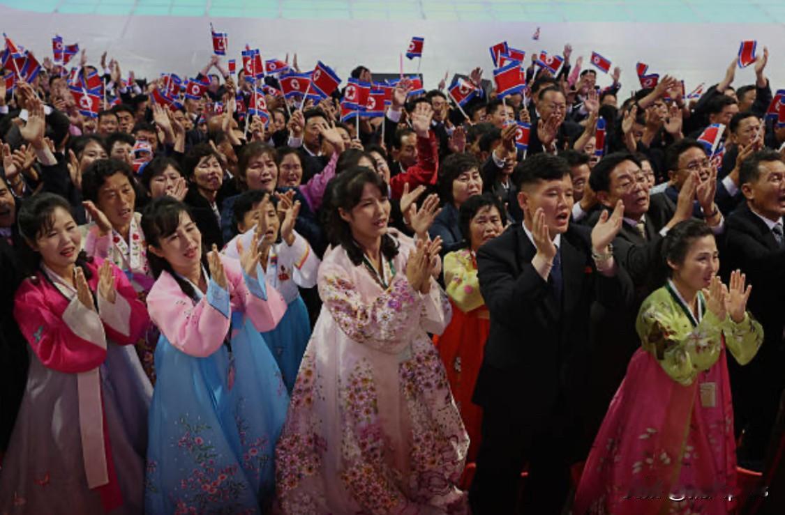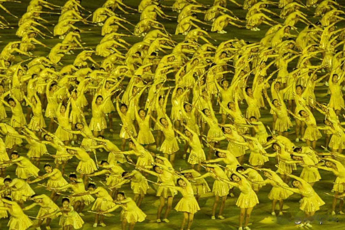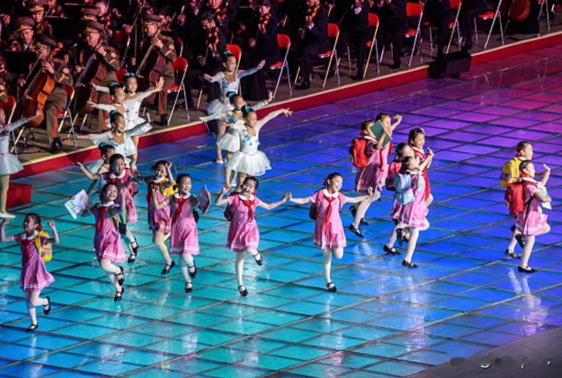 朝鲜举行了规模宏大的艺术演出,约10万名朝鲜民众与海外侨胞齐聚平壤五一体育场。2000多万人口的朝鲜,展示出的文艺演出水平还挺高,动作整齐划一,特别是阿里郎节团体操非常出名,数以千计的观众翻动看板,展现“人工LED屏”。 朝鲜观众挥舞着朝鲜国旗,激动不已。全场更是高唱朝鲜经典歌曲《世上无所羡慕》。朝鲜人虽然身材都比较瘦,但他们看起来都很幸福,按照朝鲜媒体的说法是“把人民的笑声和幸福当做第一国力”。