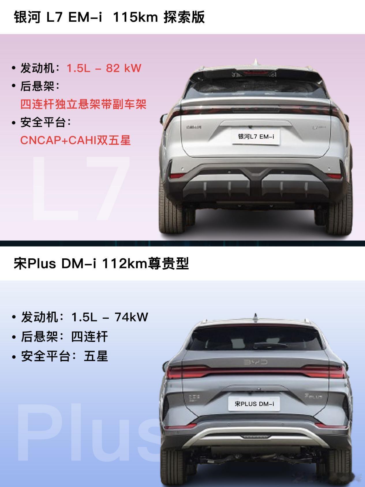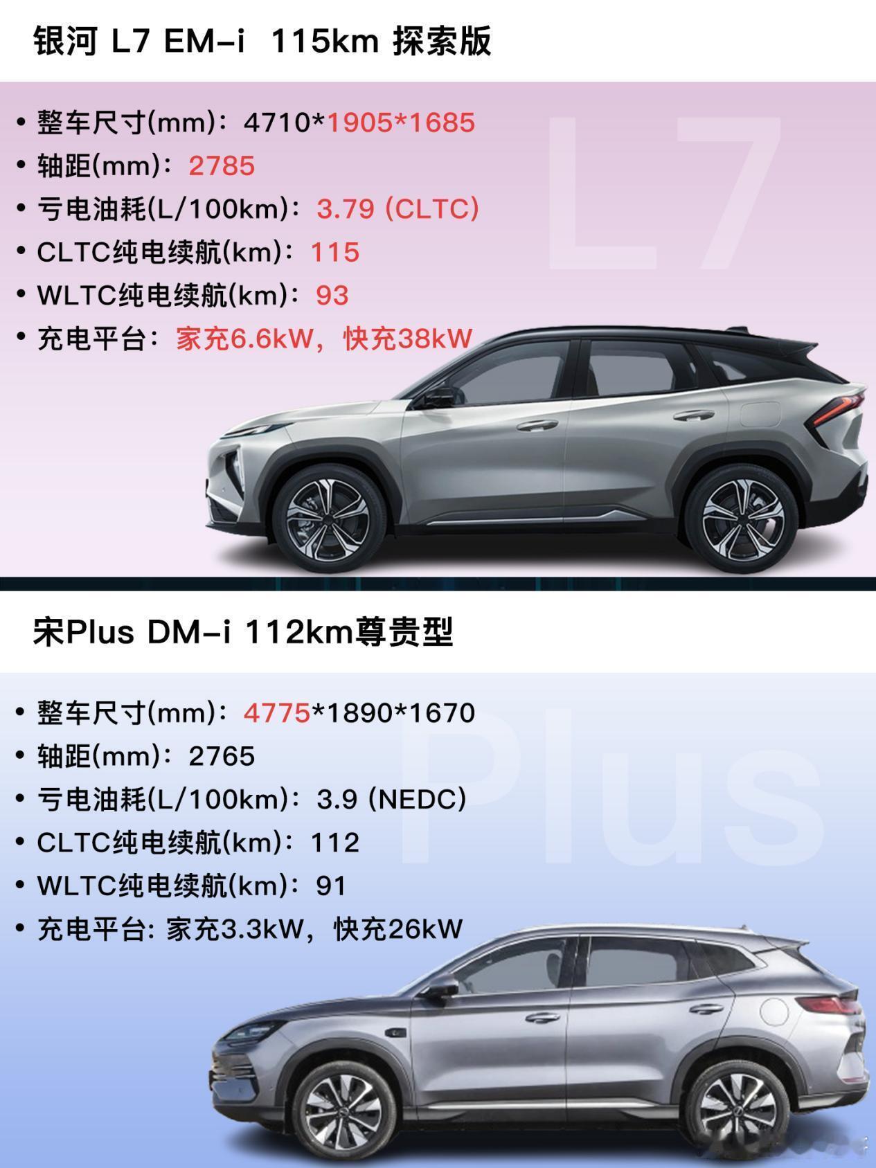 如果预算10到15万,想买插混SUV,银河L7 EM-i 与宋PLUS DM-i 是两大热门选择,