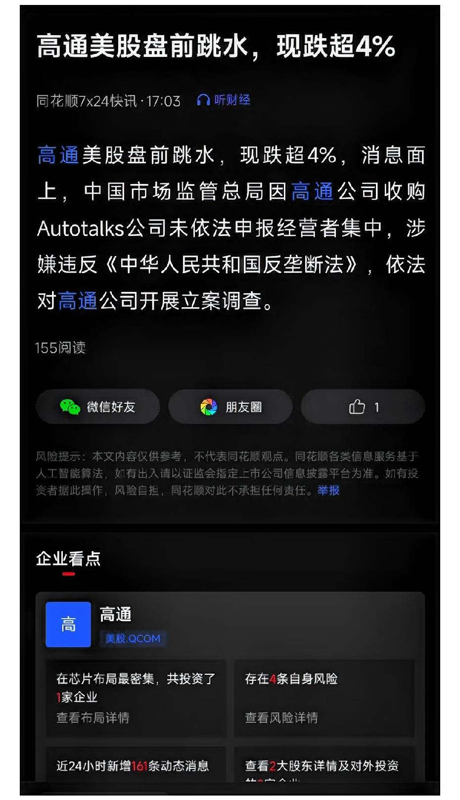 龙国继续出手,查高通!高通直接跳水!干就是了! 龙国出手查高通,高通应声而跌,这不平凡的一月又要开始了。 要和平发展,没问题,绝对没问题,和平发展不但符合龙国的国情,也符合世界各国的利益,要想实现和平发展,前提条件必须是平等,而不是强权欺压,强盗掠夺。 要想实现和平发展,必须承认龙国的自主可控,科技强大,经济发达,军事强大,不接受任何妥协,甚至不惧任何极限施压。 要想实现和平发展,必须尊重龙国的合法权益,不侵犯,不盗窃,不掠夺。 要想实现和平发展,必须顺应龙国人民的意愿,不搞颜色革命,不煽动分裂,不支持恐怖活动。 这个月不平凡,因为这个月是中共二十大召开一周年的月份,是中共二十大精神落地生根、开花结果的一周年,是西方极限施压一周年,也是西方多次被我逮捕间谍、查处外国势力干预的一周年。 这个月还是龙国与美国当局高层接触的月份,也是美国对龙国极限施压、挑衅、造谣、诬蔑、捏造证据的一周年。 这个月是龙国与美帝敌对关系的转折点,也是龙国与美帝断交、决裂、翻脸的一周年。 这个月还是美帝与龙国在经济上脱钩的一周年,是美帝与龙国在科技上制裁的一周年。 这个月还是美帝与龙国在军事上对抗、冲突、摩擦的一周年。 这个月不平凡,请注意风险。 这个月不能重仓,以防误伤。 麻烦看官老爷们右上角点击一下“关注”,既方便您进行讨论和分享,又能给您带来不一样的参与感,感谢您的支持!