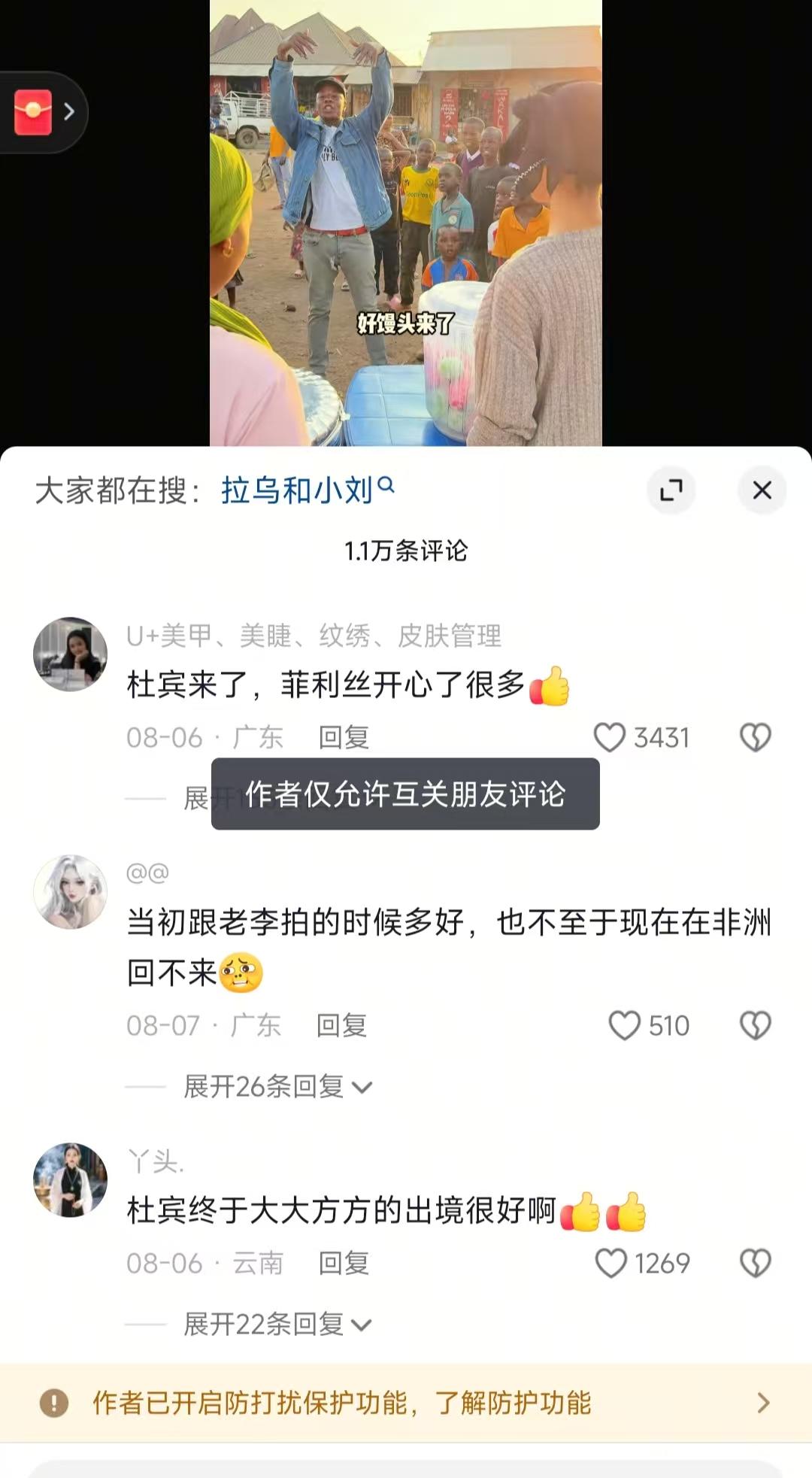 现在全网最糟心的男就是杜兵了吧! 不是因为豆豆回不了中国也不是因为账号不能更新而是因为有人传菲利不会回中国了,这个真的很郁闷 前几天闲得无聊刷菲利的视频,本来想看看豆豆最近长多高了,结果点进去一看,评论区直接没了!输入框稀稀咣当啥也没有,历史评论倒还在,可新评论根本发不出去。我赶紧私信问账号管理员,结果石沉大海,郁闷得我差点把手机扔了!说实话,我之前关注的一个母婴博主也这么干过,后来才知道是怕网友骂她带货翻车,所以菲利这波操作,我猜八成也是团队怕争议。你瞅,关评后转发量降了三成,可“菲利账号关评”的话题两天就破50万阅读,自媒体全在扒,这热度反而更猛了,真是越藏越让人好奇! 更离谱的还在后头!有个IP在坦桑尼亚的网友,在跨国生活群里说菲利不回杜兵家了,还找了个在中国人开的金矿上班的对象,负责修设备,俩人都住仨月了。我晕!真的假的?我赶紧让朋友拉我进那个群瞅了瞅,结果就看到个截图,那网友发完消息就潜水了,问他要邻居联系方式也不回,这也太扯了吧!老实讲,我之前也听过不少网红的瓜,有的是网友瞎编的,有的最后还真锤了,菲利这事儿现在没实锤,可越没实锤越让人抓心挠肝,你说这网友要是没点依据,敢这么瞎咧咧吗? 网友跟我一样急,都跑去问菲利闺蜜红玲。我翻了红玲最近的三条动态,底下八十多条留言全是问菲利的,“是不是不回杜兵家了?”“金矿男友是真的不?”结果红玲看了也不正面说,就给一条留言回了“哈哈”俩字。坦白说,我之前也遇到过这事儿,问我闺蜜是不是跟她男神在一起了,她也跟这儿打哈哈,当时我还觉得她矫情,后来才知道是真的,就是不好意思说。所以红玲这“哈哈”,我总觉得是默认,可又没证据,这种模棱两可的态度,比直接说“不知道”还让人膈应,你说对吧? 现在网友分成两拨吵,一拨说“去年还看他俩带娃去公园,好好的一家人咋就散了”,还整理出俩人去年出镜次数从每月四条降到一条,今年直接没同框,看着挺唏嘘的。另一拨却说“菲利在非洲才叫巴适得板!”,说她超市月流水不少,视频里跟当地朋友聚餐、打理生意,比跟杜兵在一起时只围着家务转强多了。说真的,我看菲利最近的视频,确实觉得她状态给力,眼神里有光,不像之前总有点拘谨。别人还跟我说“凡事都有定数,强求不来”,菲利现在这样,或许对她来说就是最好的安排,毕竟日子是自己过的,舒服最重要,你说呢? 总之,咱追这瓜也别太崩溃,当事人没出来说一句话,所有消息不是网友猜的就是传言,瞎琢磨也没用。之前我追另一个网红的瓜,天天蹲更新,结果最后发现是营销号编的,浪费我好几天情绪,后来才想明白,别人的日子再好再糟,跟咱也没啥关系,看看乐一下就可以了,你说是吧!