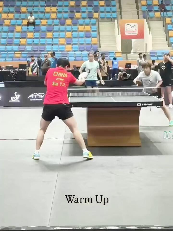 是莎莎和大迪,莎莎穿着比赛服,真好看! 两个人的热身训练看清楚了,还穿着比赛服,第一次见这样的印度世锦赛! 孙颖莎在这次的比赛中,可是团体赛,压力没有那么大,可以放心抡球了,全靠自己随心发挥,真的太开心了,超级棒的一次体验,在印度健康完成,比赛和心情都要保持好!