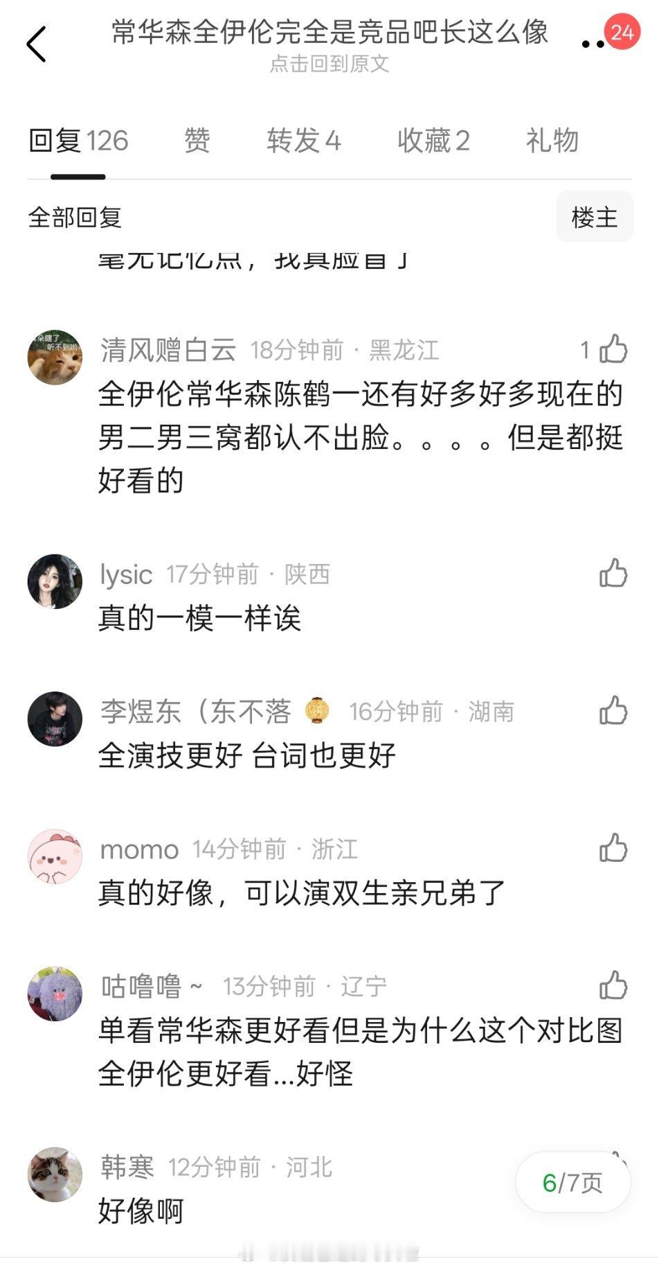 网友又发现一组竞品,常华森,全伊伦,陈鹤一,张康乐,是不是长得很像?另外评论区还