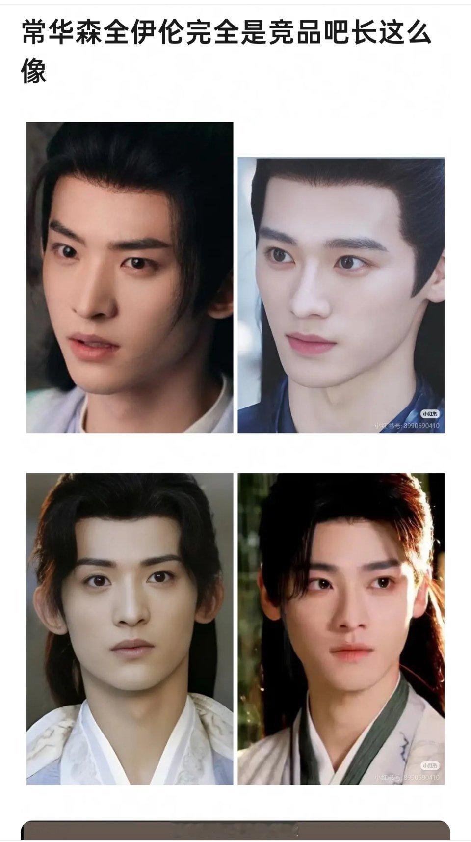 网友又发现一组竞品,常华森,全伊伦,陈鹤一,张康乐,是不是长得很像?另外评论区还提到王星越,丞磊,王弘毅,陈鑫海,赖伟明都有点像,感觉现在古偶男主有越来越像的趋势