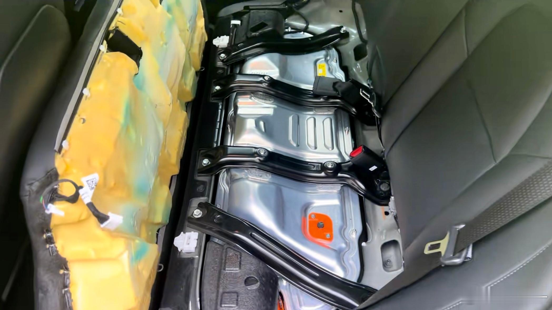 原本第二排座椅下方会有个类似燃油车油箱的鼓包,里面是高压配电盒、车载充电机、DCDC转换器等部件,如图3特斯拉model 3。