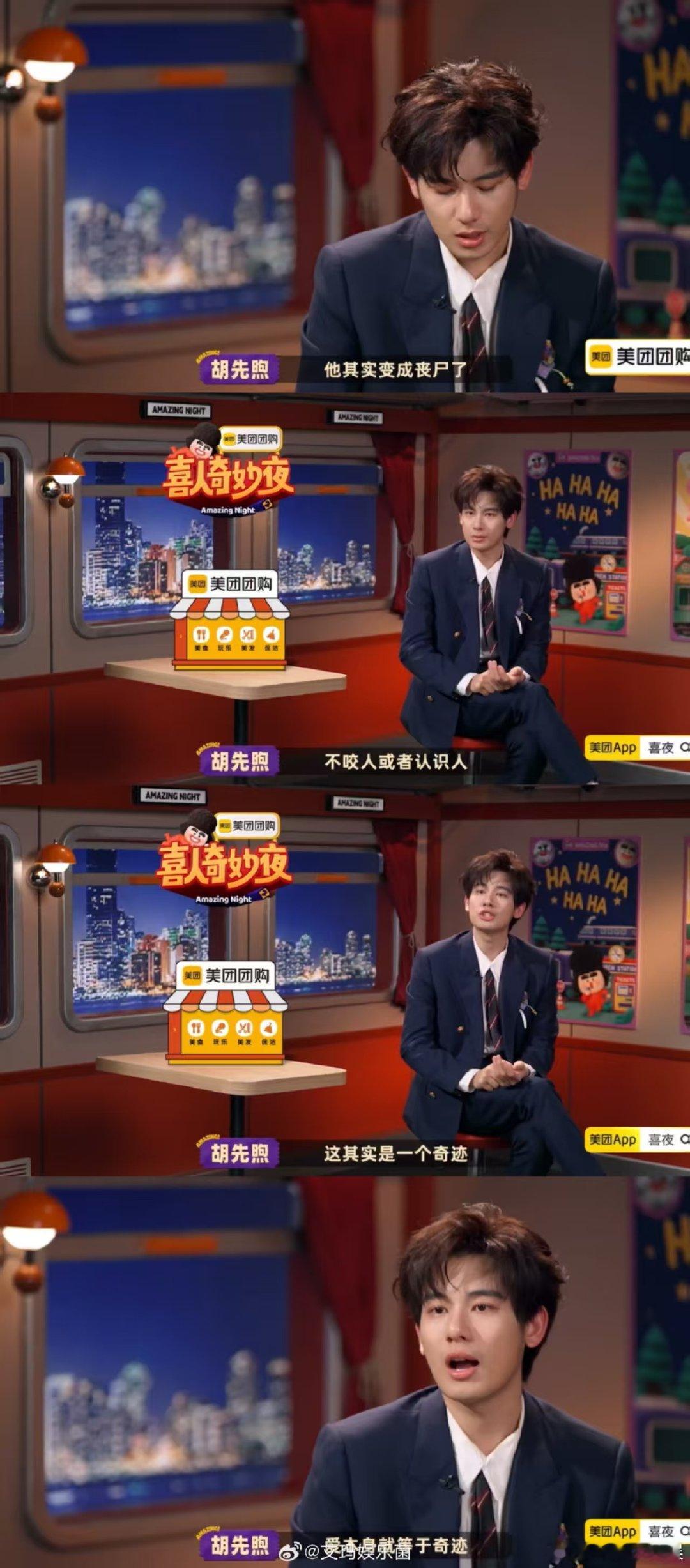 胡先煦被日常的爱情感动到落泪哈哈!在《喜人奇妙夜》的《生化稍后危机》里,胡先煦