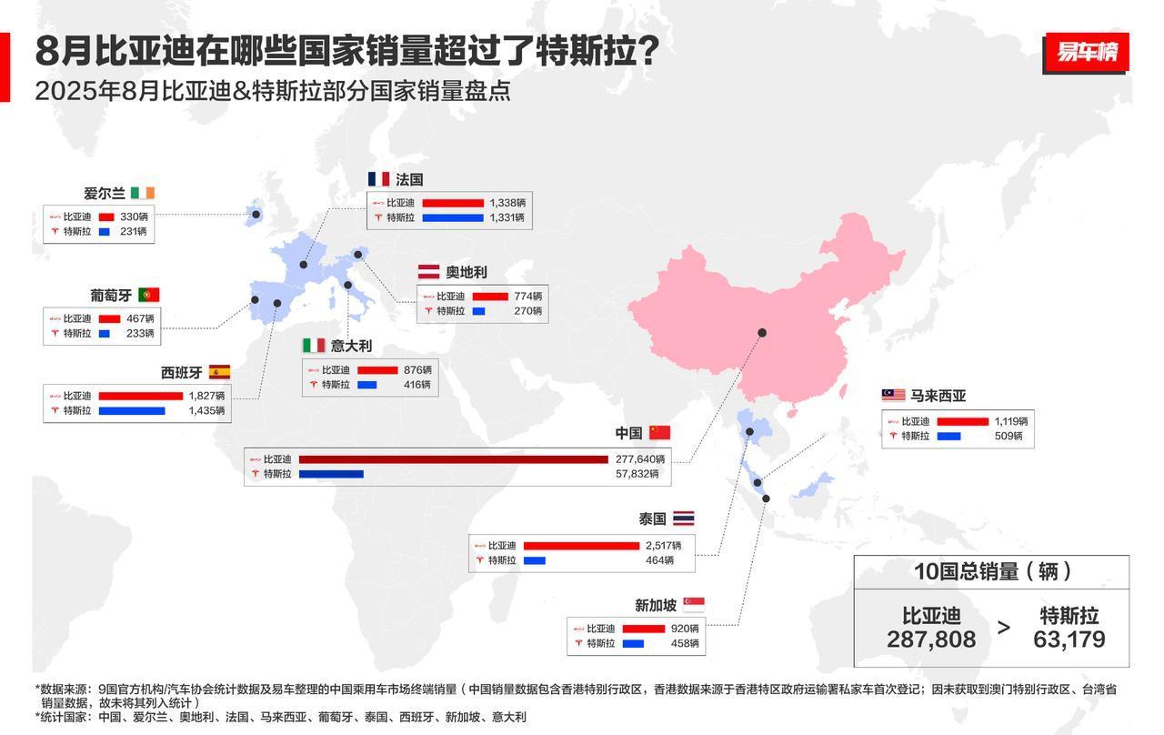 比亚迪在销量上连续四个季度超越特斯拉了。[白眼] 包括刚刚过去的第三季度,比亚迪纯电车型销量达58万辆,远超特斯拉的49万辆,比亚迪持续扩大领先态势。 当然,紧张的也不止是特斯拉,全球所有车企都在面对国产汽车的压力。