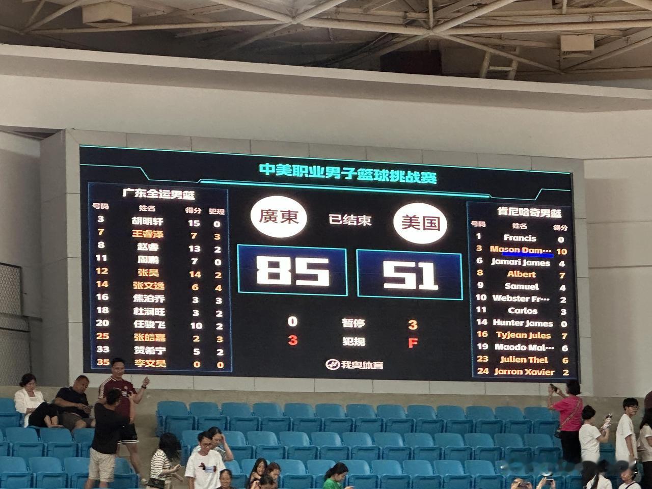 出乎意料!广东全运男篮大胜美国肯尼哈奇男篮34分,徐杰因病休战,胡明轩和赵睿再度合体,继续延续男篮亚洲杯的状态,两人全场合砍28分,如果徐杰回来,完全体的广东还是实力挺强的,全运会夺冠的可能性也非常大,当然,这支美国肯尼哈奇男篮实力水平确实不高,更多像是一支美国野球队,业余球员临时组成的旅游球队,攻防两端对广东队都没有威胁力,广东队打这种球队还是降维打击的!