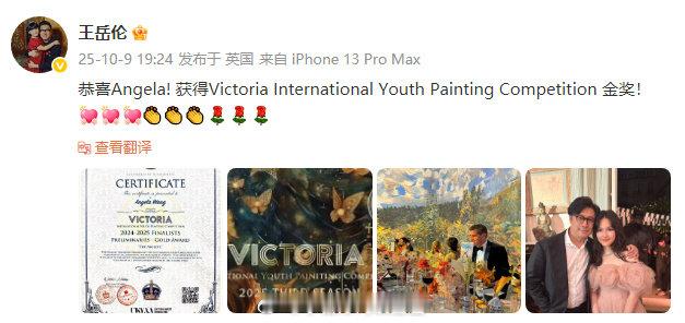 李湘王岳伦发文恭喜王诗龄李湘、王岳伦恭喜女儿王诗龄凭借绘画作品获得“维多利亚国际青少年绘画大赛”金奖。 ​ ​​​