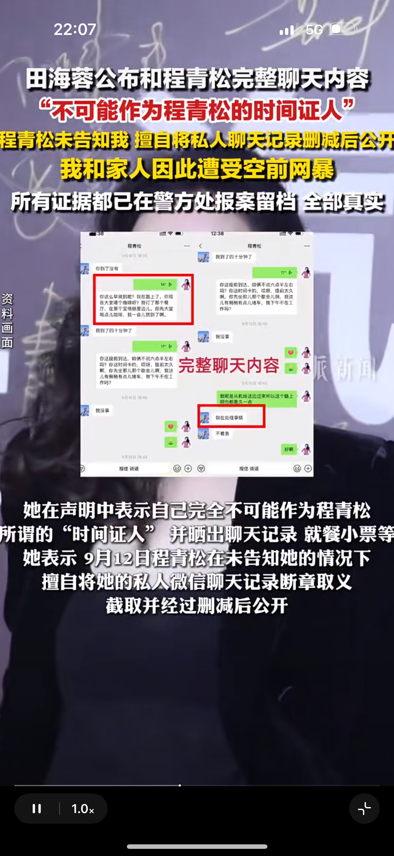 田海蓉程青松聊天记录完整时间线田海蓉多次发文澄清