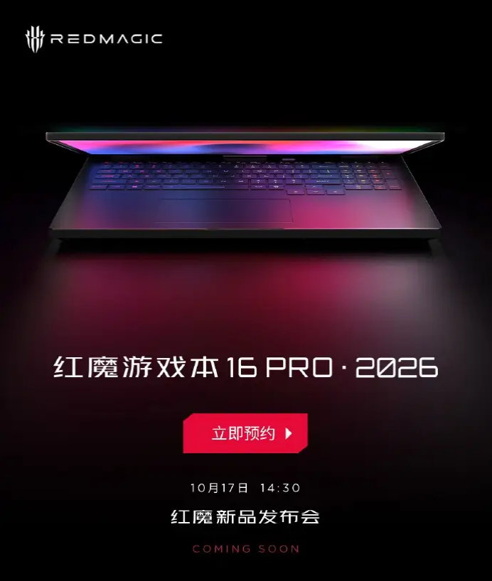 【红魔游戏本16 PRO·2026开启预约,10月17日正式发布】