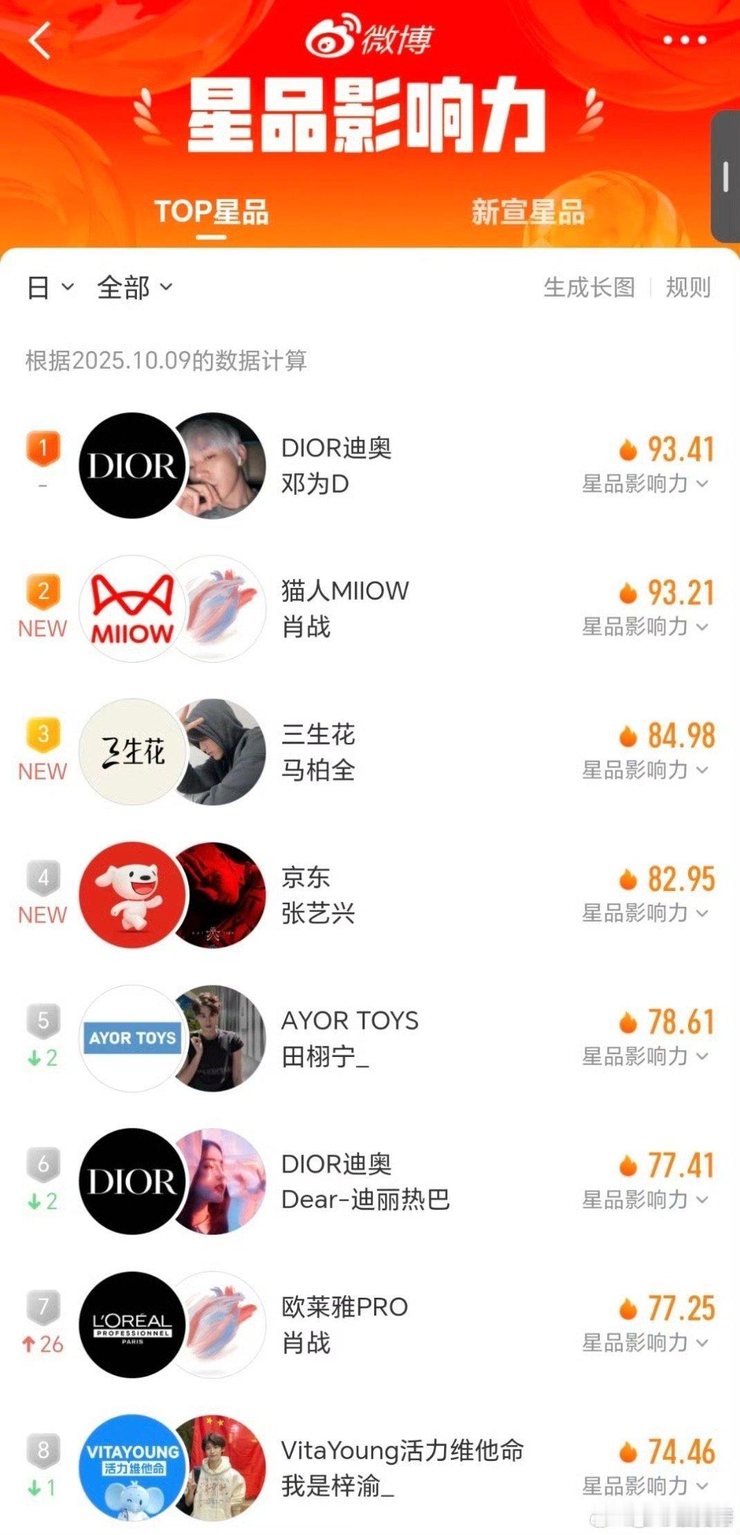最新星品影响力邓为93.41再次蝉联第一,关键是他才出道4年,真正工作只有2年,还属于新星,怎么说呢,邓为商业价值牛掰,扛剧抗招商,算是内娱的宝藏演员,纯纯的真民选大流量。。星品