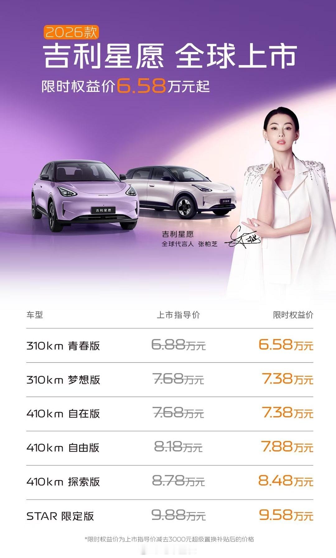 2026款吉利星愿6.58万元起张柏芝任贤齐世纪同框 ​​​