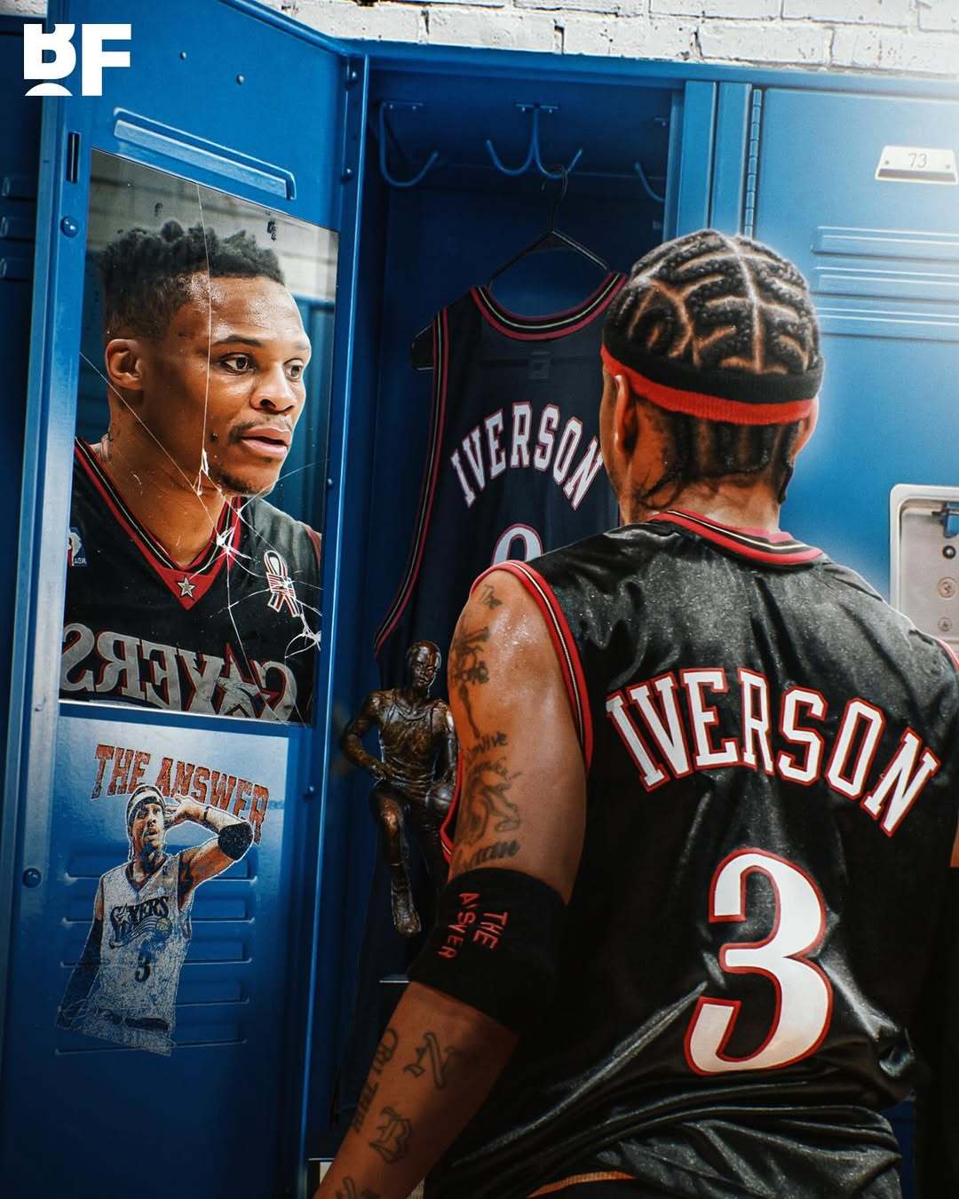 艾弗森在一档节目中表示,拉塞尔-威斯布鲁克是最让他在场上看到自己影子的人。“拉塞尔全力以赴。他每一场比赛都像是在打生涯最后一场一样,你一眼就能看出来。他的能量始终如一,每一次都是全力以赴。”