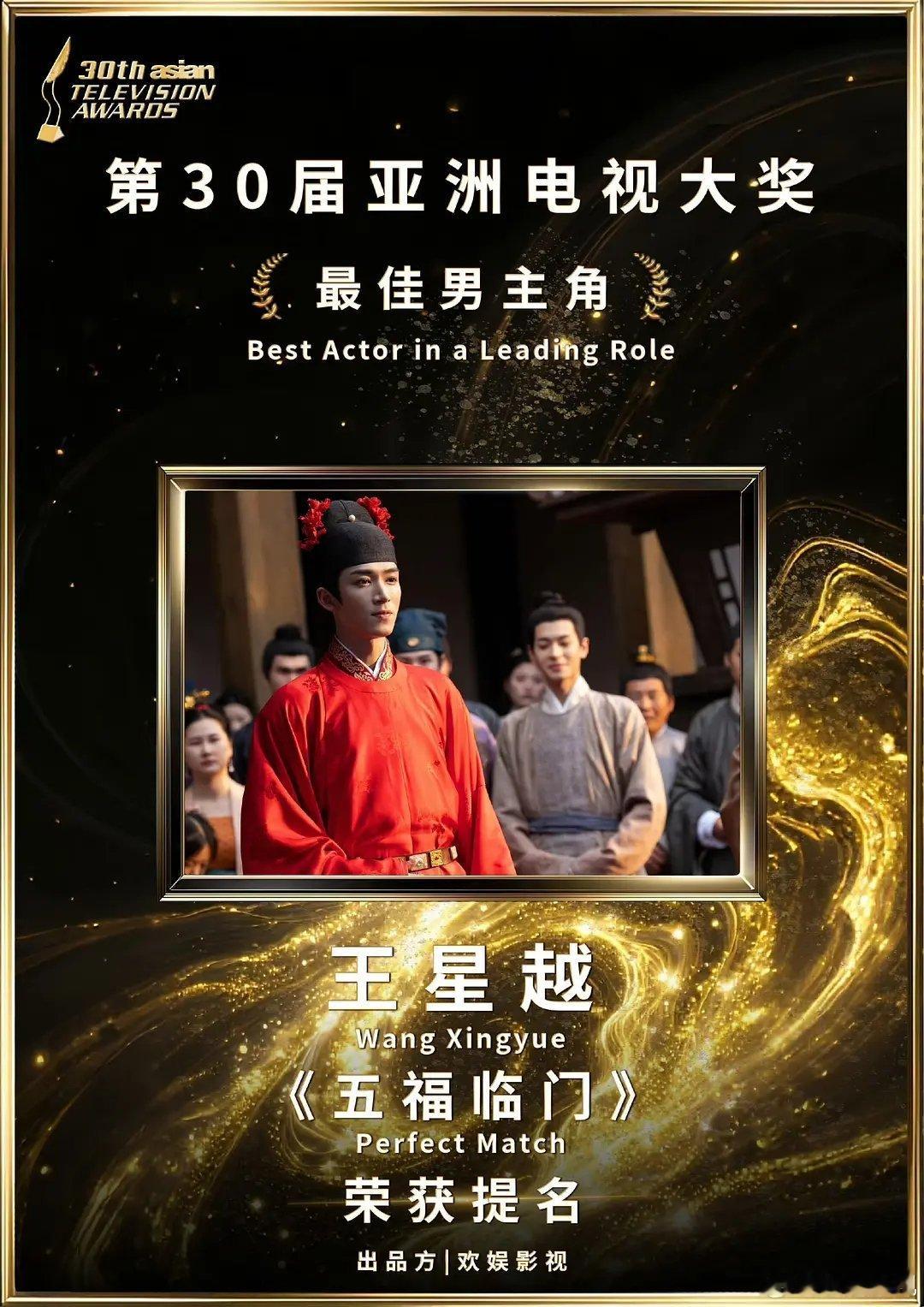 王星越凭借《五福临门》中“柴安”一角,入围第30届亚洲电视大奖最佳男主角,成为首位获得该奖项提名的中国00后男演员,刷新行业纪录。