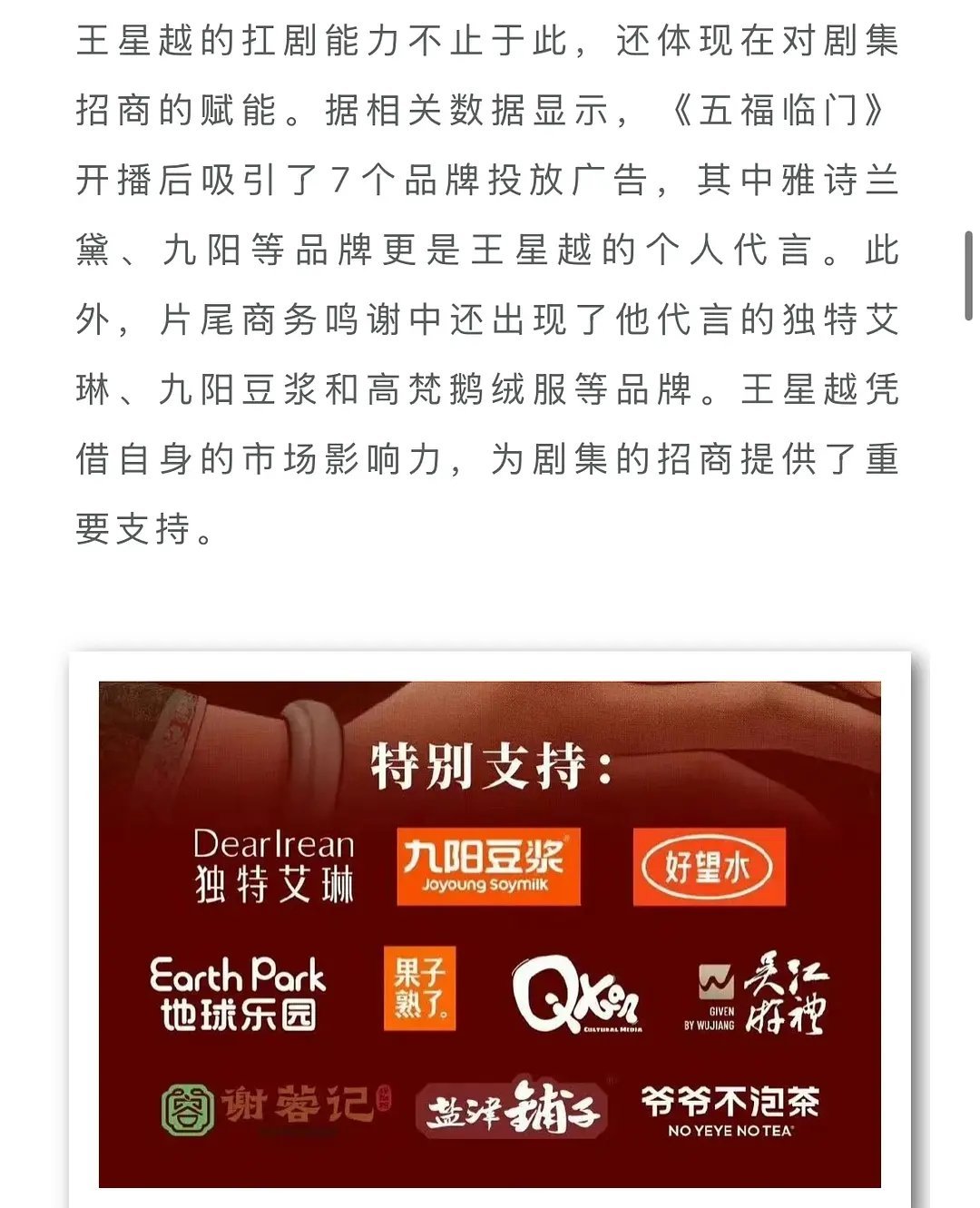 海外影响力🈶,收获重磅级粉丝朋克教母。德塔文在五福临门剧播后就发长文盘点过王星越的贡献了,角色贡献度遥遥领先:一己之力扛起剧招商:出圈演技真挚,一滴泪也动人。