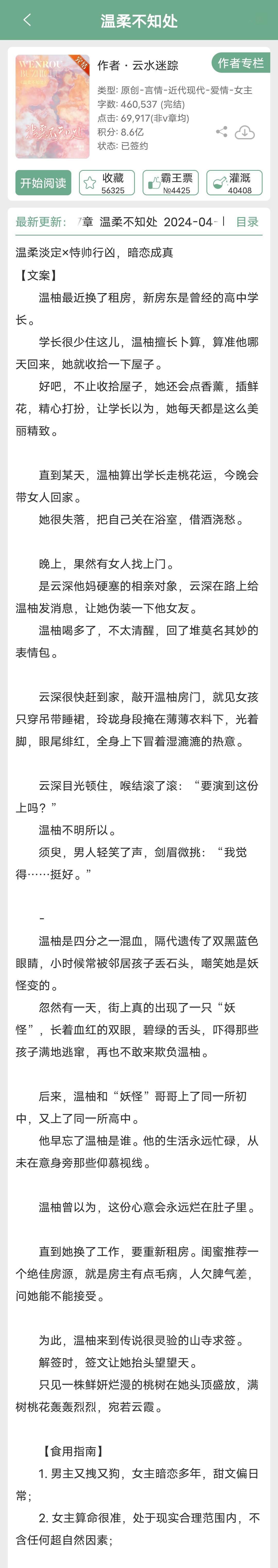 推文[超话]带有同居梗的现言1《今日几分熟》两个概念2《温柔不知处》云水迷踪3《