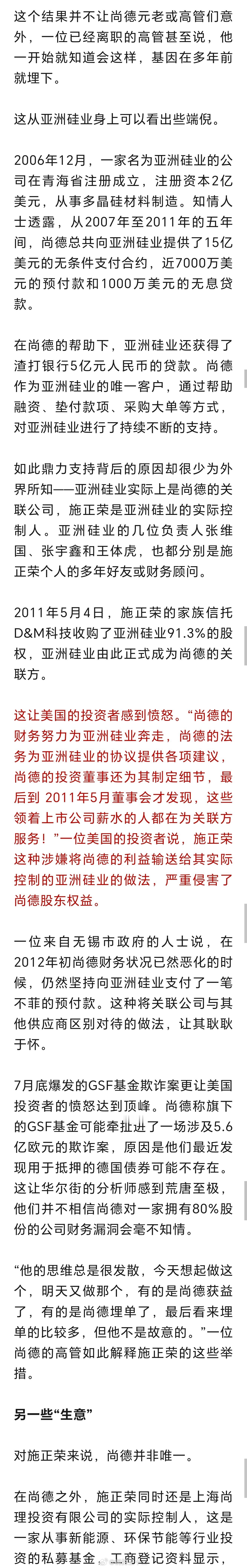 翻看15年前无锡尚德被创始人家族利用控制公司的时间掏空的文章(注意是南周的作品)
