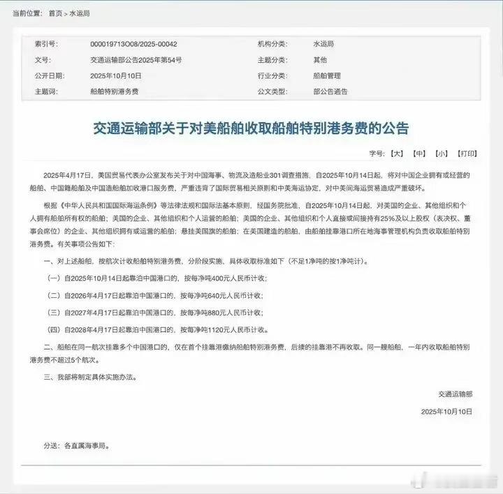 那近期,美国的这些政策,更是想一出是一出,也不管执不执行得了。美国贸易代表办公室在4月17日发布的最终行动方案,将对“中方运营或所有”的船舶按净吨位征收分阶段港口费:自2025年10月14日起为每净吨50美元,随后每年上调,至2028年4月17日达每净吨140美元;对“中国产船舶”(即便运营方非中资)则按净吨或“每箱计费”孰高征收,起步为每净吨18美元或每箱120美元,同步逐年上调至每净吨33美元或每箱250美元;每艘船每年上限征收5次,且按每次赴美航程计费而非逐港叠加。