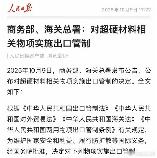 下午5时22分,商务部、海关总署发布公告:对超硬材料相关物项实施出口管制。