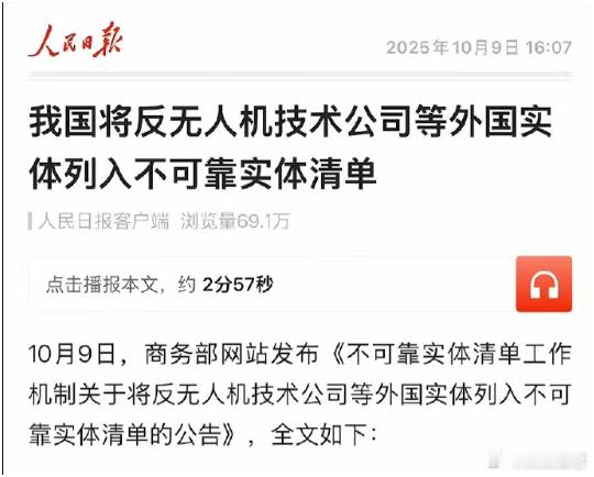 美帝不是一直在想方设法的卡我们的脖子吗?可是,现在美帝所取得的“成绩”却是被我们卡了脖子,而且我们卡美帝脖子的力度,还一直在持续加强。比如这个十一长假结束后的第一天,我们就接连发布公告,打出了一波组合拳,继续升级卡美帝脖子的力度。10月9日上午9时34分,商务部加强稀土相关物项出口管制:将采取多种许可便利措施。 下午4时07分的发布,我国将反无人机技术公司等外国实体列入不可靠实体清单。