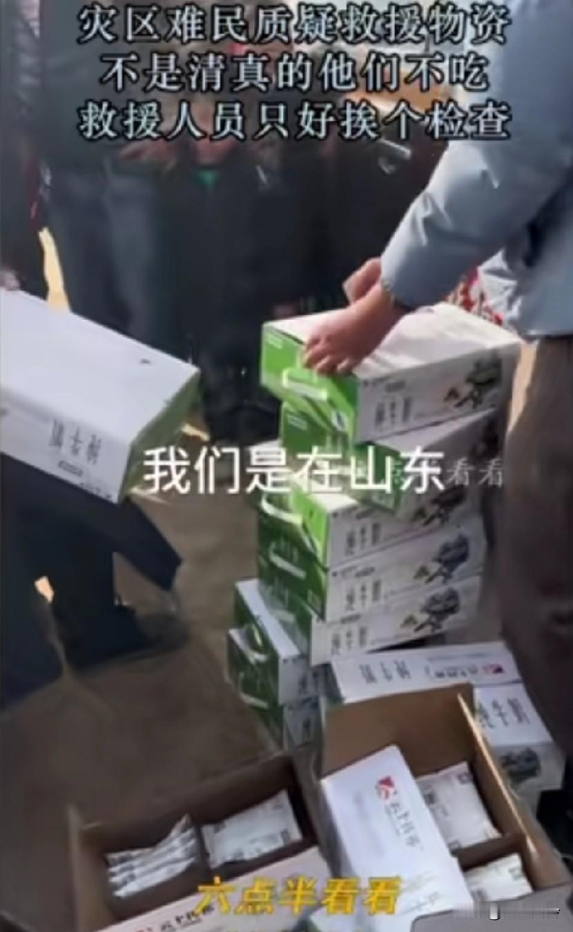 灾区难民质疑救援物资不是清真的,他们不吃,救援人员只好挨个拆开检查还道歉自己是山东的,不知道他们是清真的 第一次听说纯牛奶也分清真的,涨知识啦!尊重他们的文化,这个本来无可厚非,但是也得看是什么情况,一个星期吃不上饭的情况下,看他还顾不得上是不是清真食品?和珅早就说过了,稀饭不加沙子就分不出灾民!尊重他们,不是清真的不要发给他们就行了,有就发,没有就等有了再发 明显是扯,教义里面有紧急避险的内容,当收到生命威胁时可以吃,真正的清真是禁酒。看来事态不急,那就拉走别给。还给他一箱一箱拆开看?直接拉走捐学校!他们还是没有饿!