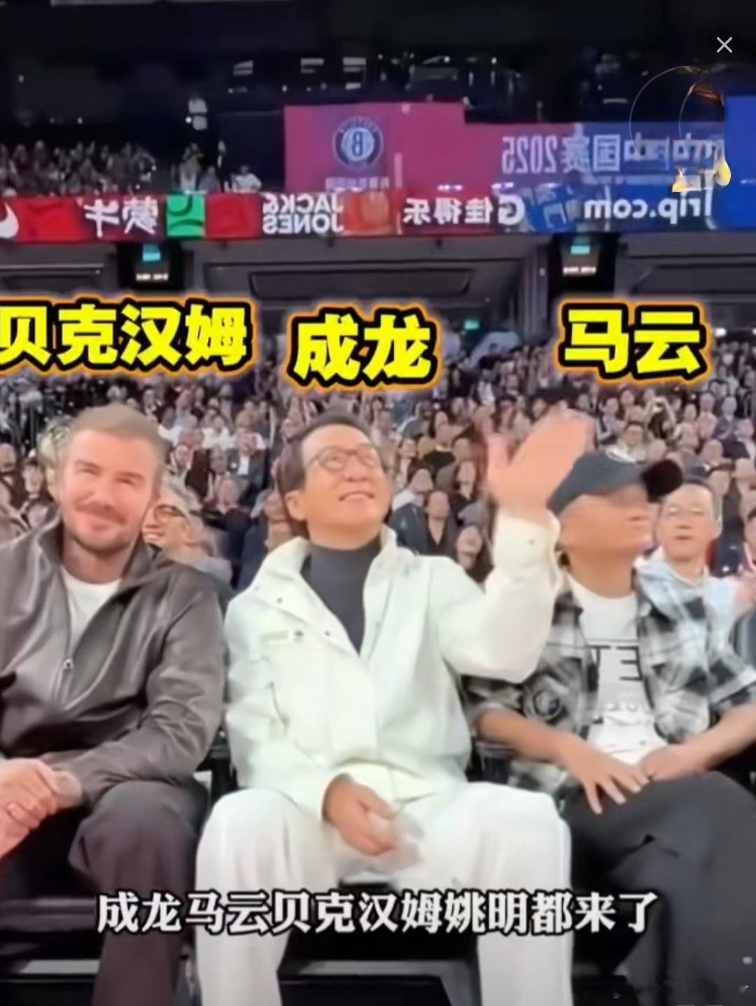 马云成龙贝克汉姆并排观赛集体现身NBA中国赛,阵容强大,星光熠熠。