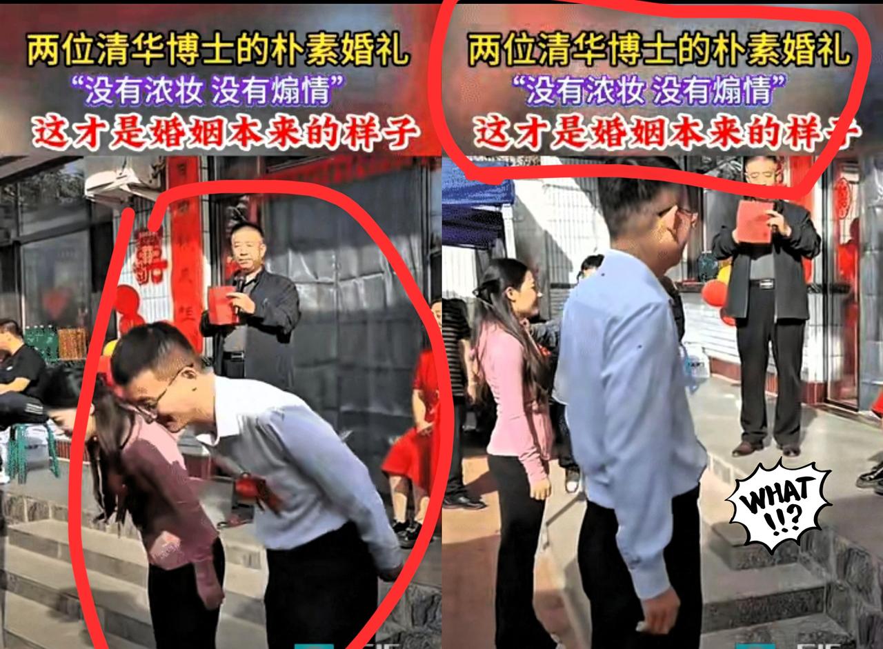 两位清华的博士的婚礼有多朴素呢, 新娘没有穿婚纱,只穿了一件平时简单的服装,甚至 没有化妆素颜出席婚礼,新郎套件白衬衫,没有婚纱、不摆宴席,连化妆都省了,可两人眼里的光比任何聚光灯都亮,这才是婚姻该有的样子啊! 现在结婚太卷了,买房买车要掏空父母钱包,彩礼宴席压得人喘不过气,好像仪式越隆重才越有面子。 但这对博士情侣偏不,他们把钱和精力花在刀刃上,用最朴素的方式证明:婚姻的核心从不是场面多盛大,而是身边人对不对、感情真不真。 你看新娘不施粉黛却自带灵气,新郎稳重踏实满眼是她,父母看着懂事的孩子,脸上的笑容比任何宾客的祝福都珍贵。 这哪是“寒酸”,明明是最高级的浪漫——不被世俗标准绑架,只忠于彼此的心意。 其实我们都该学学这种清醒,婚礼只是个开始,把经营生活的钱浪费在一时的排场里,才是真的不值。 你觉得结婚一定要有盛大仪式吗?来评论区说说你的看法!