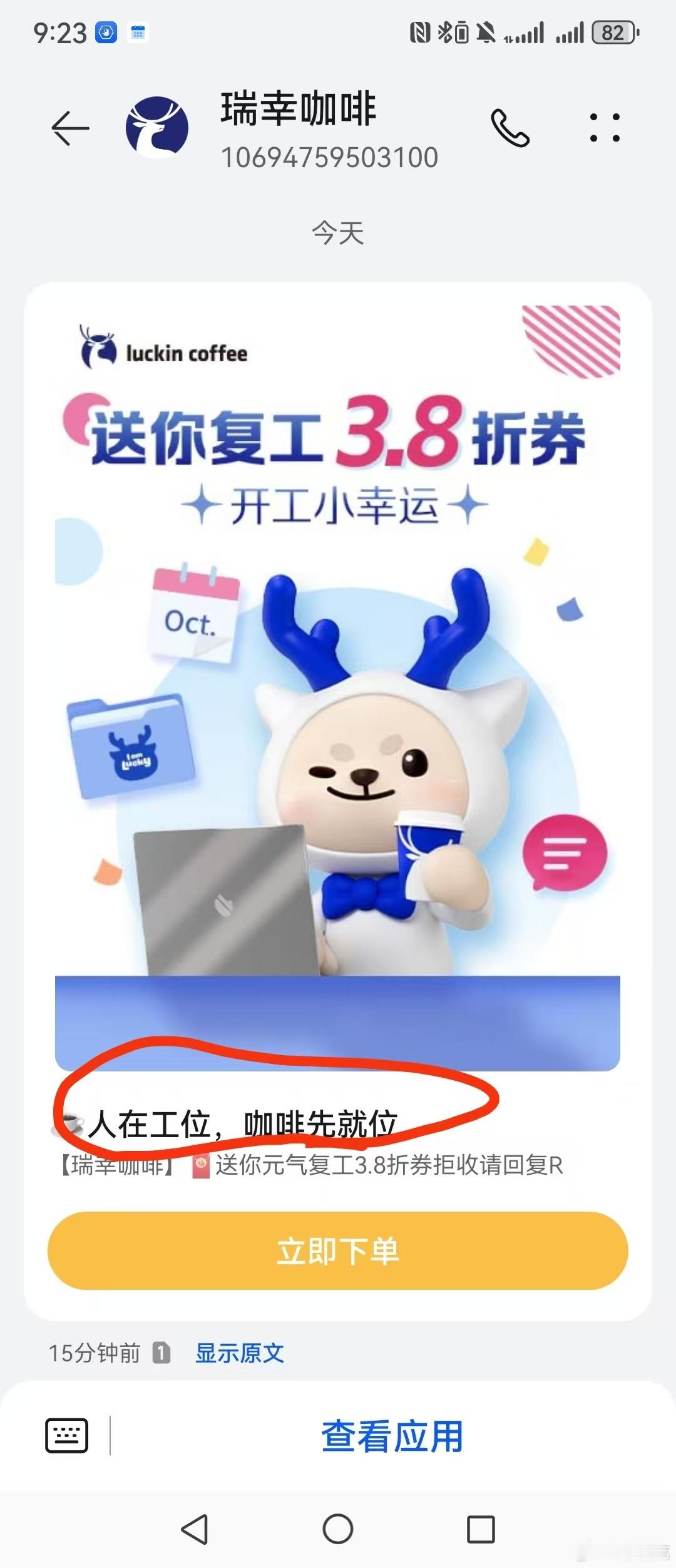瑞幸咖啡这个广告语很贴切,人在工位,咖啡先就位