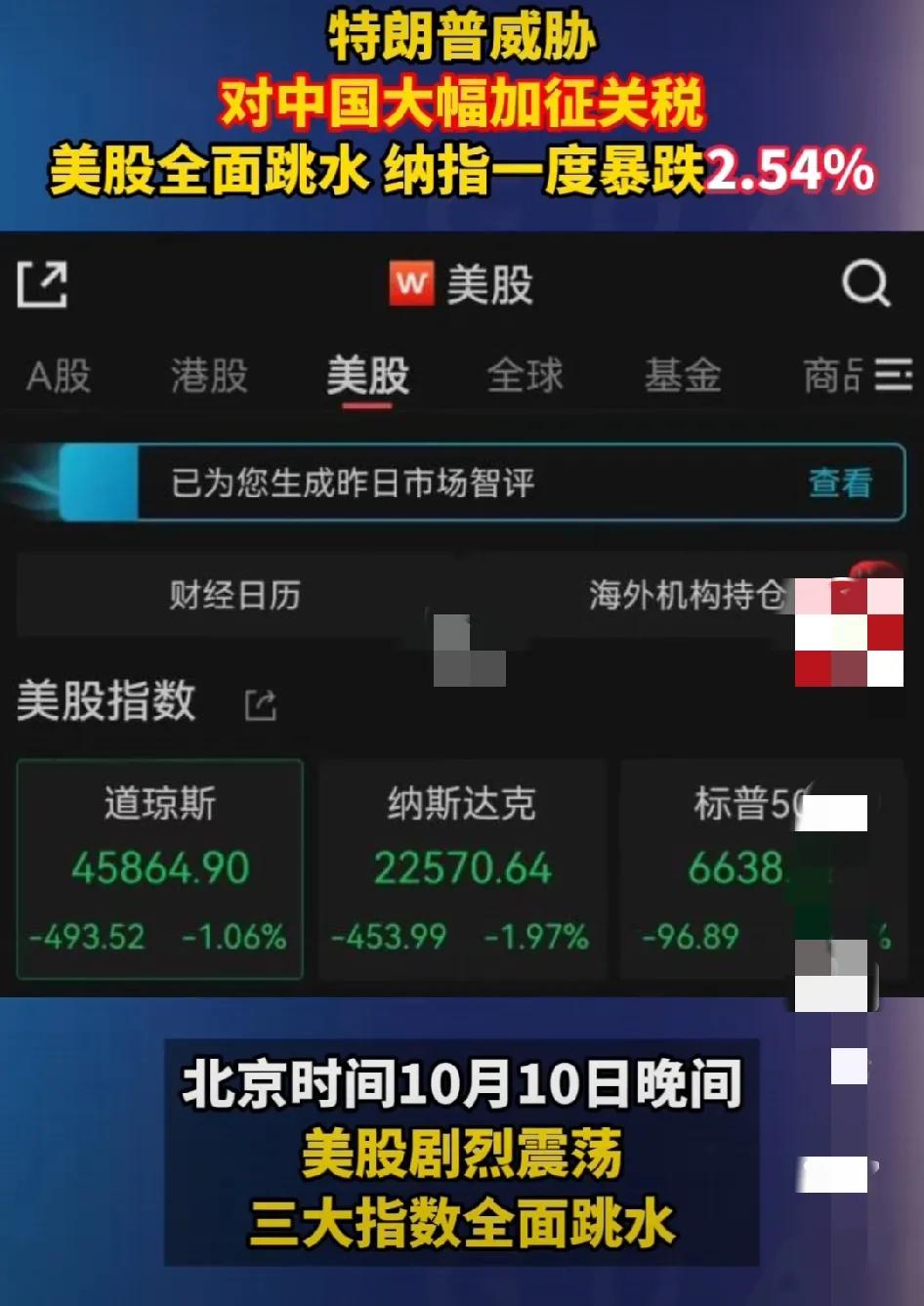 特朗普政府造孽啊!让多少股民金融机构损伤严重,哀嚎不断!特朗普政府已经折腾一年,现在变本加厉了,连白宫都要折腾没了!美丽国一地鸡毛! 据报道,2025年10月11日美股遭遇“黑色星期五”,三大指数集体收跌,其中标普500指数跌2.71%,纳斯达克综合指数跌3.56%,道琼斯工业平均指数跌1.9%。 首先,美国联邦政府因“停摆”进入第10天,白宫管理与预算办公室宣布启动裁员程序,加剧市场焦虑情绪。 其次,黄金价格涨1.05%,报4017.845美元/盎司;十年期美债收益率下跌近8个基点,反映投资者避险需求上升。 1 再有,科技股领跌,苹果、微软、谷歌等科技巨头跌幅均超1.5%,特斯拉跌5.06%,台积电跌6.41%。 另外,近期美股自4月以来持续上涨,部分分析师认为市场存在回调休整预期。此次暴跌暴露出投资者对政策不确定性的脆弱性,原油期货跌幅超4%,比特币一度暴跌超10%。
