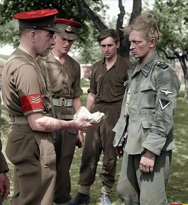 图片展现的是二战时期,一名德军被英军俘虏的场景。英军从这名德军俘虏身上搜出大量现钞后,对他展开审讯,询问这些钱财的来源。 此时,这名德军的回答将决定他的命运走向。若这些钱是通过搜刮、抢劫或杀人所得,那他的下场估计会很凄惨;若钱是他自己的,结果或许会有所不同。 面对英军的审问,他的心理防线彻底崩溃,沮丧之情溢于言表。看来,他终究难以逃脱被制裁的宿命。