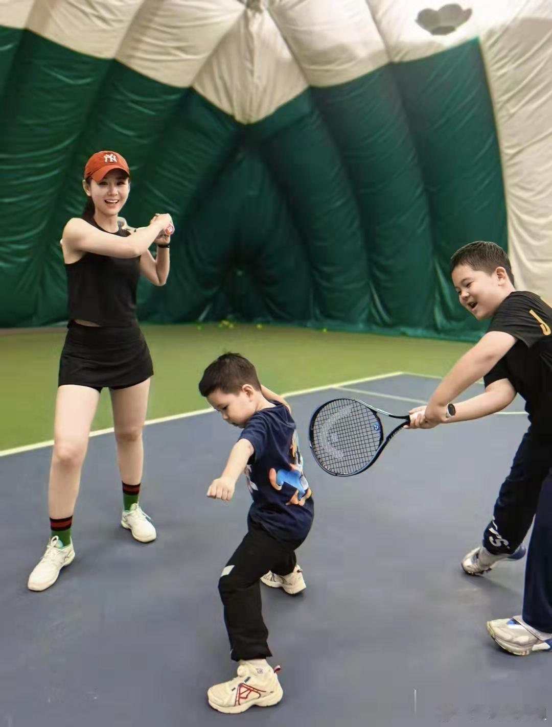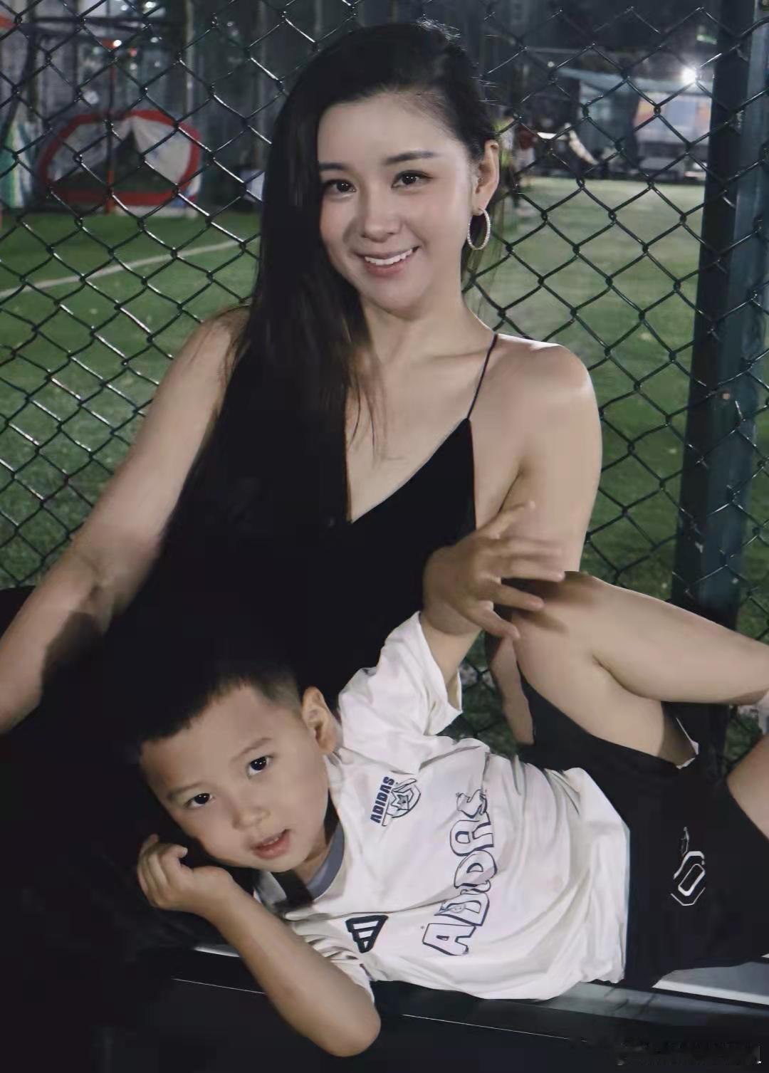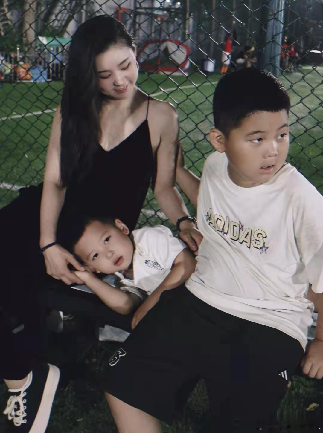 王雷带娃踢球, 40岁李小萌穿吊带裙出镜又白又美, 搂俩儿子像姐姐!