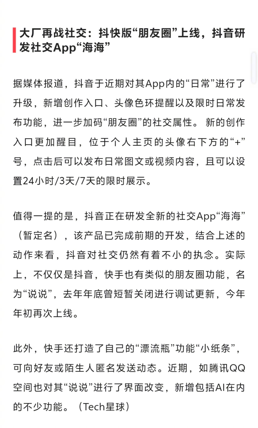 字节对社交执念不减,就看能不能做起来。鹅厂一家独大,没有充分竞争,也不是好事。