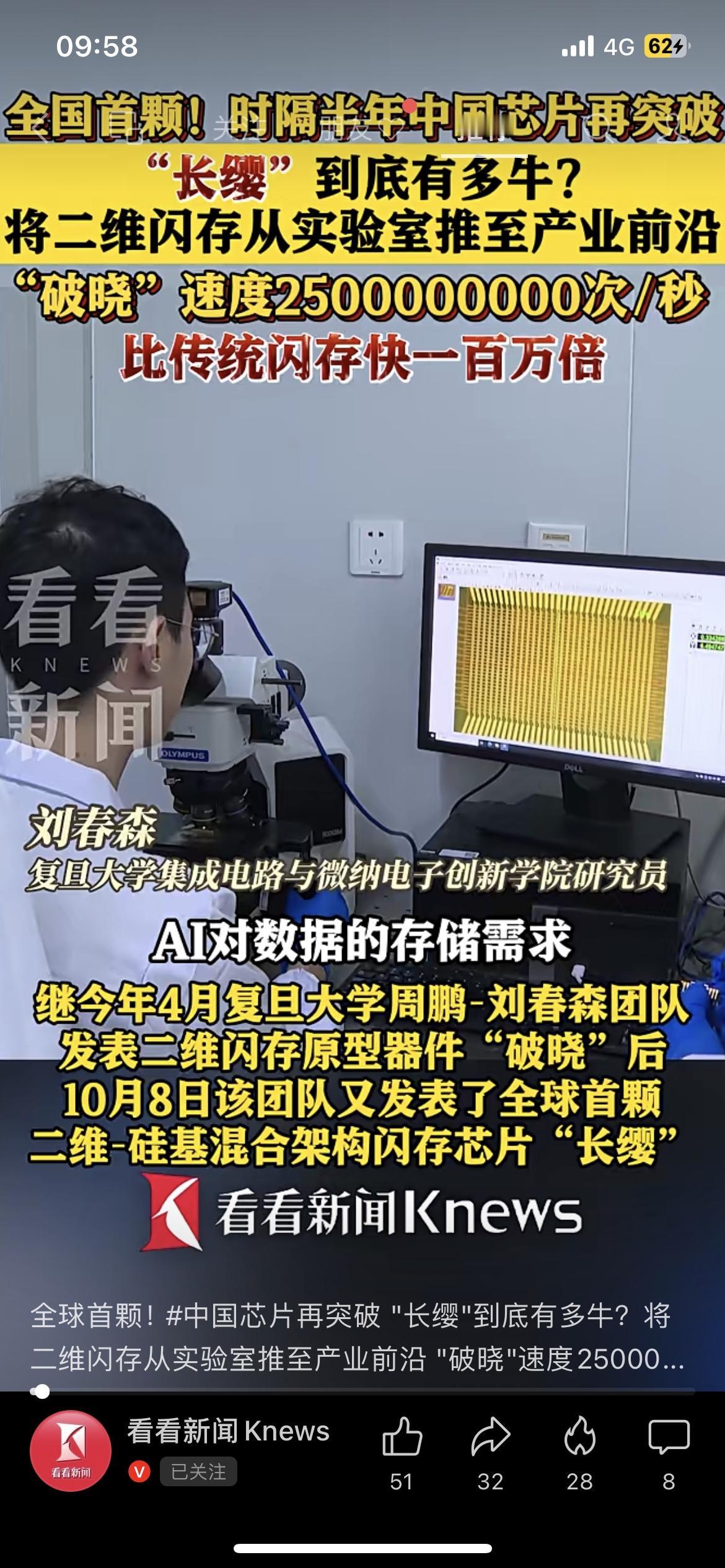 家人们,国产芯片又搞大事情了!复旦大学团队刚发布全球首颗“长缨”闪存芯片,之前的“破晓”原型速度直接飙到每秒250亿次,比传统闪存快100万倍,这速度简直是坐火箭啊! 通俗点说,传统闪存存数据像“走楼梯”,这新芯片直接“坐电梯”,未来AI、大数据存数据效率能翻好几倍。对A股来说,半导体尤其是存储芯片、国产替代方向的个股,可能会因为这波技术突破被资金关注。不过要说明的是,技术从实验室到产业化还有过程,咱们得客观看待~ 你觉得这颗“长缨”芯片能带动半导体板块走多远?手里有关联个股的,来评论区聊聊你的看法! (免责声明:本文仅为市场信息解读,不构成任何投资建议,据此操作风险自担)芯片 中国芯片发展 存储芯片 中国芯片发展 A股 半导体 国产芯片 科技突破