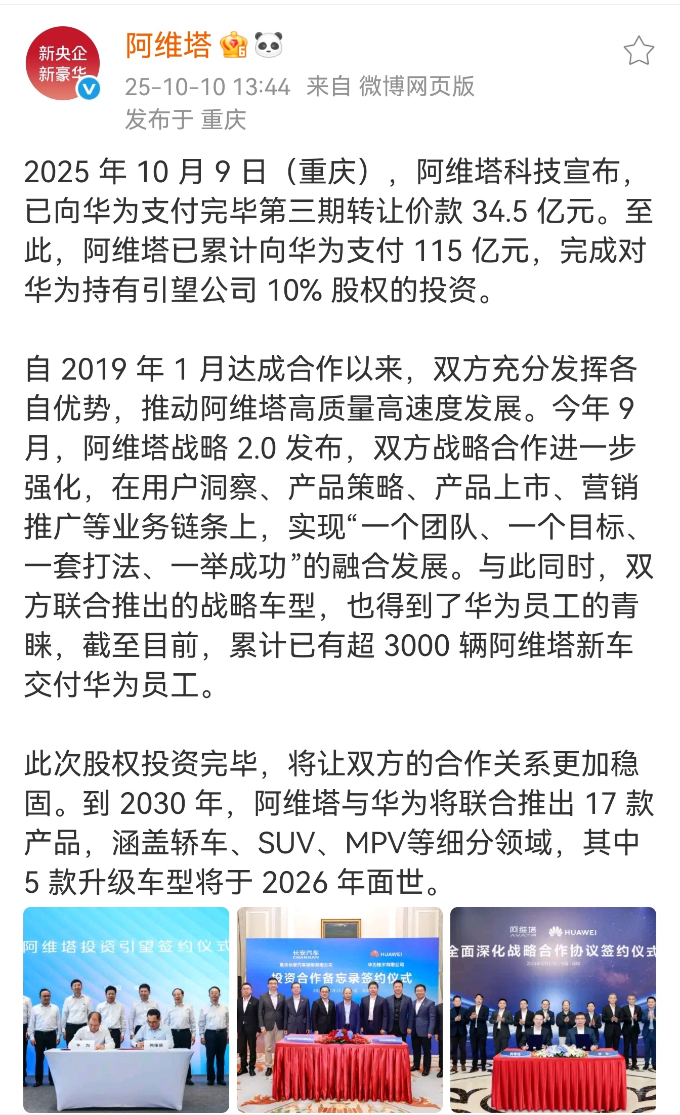 释放的信号十分明确:阿维塔与华为的合作坚定不移,不是小打小闹,而是要玩大的!