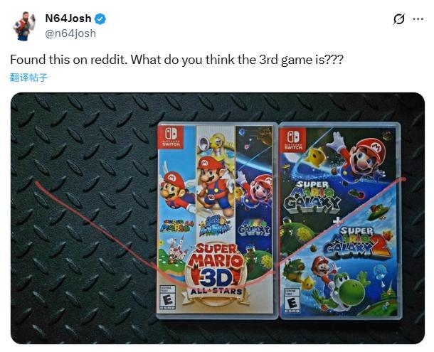 海外游戏博主n64josh近日在推特po出《超级马力欧3D》和《超级马力欧银河1+2》Switch卡带盒,这位博主注意到,似乎可能存在第三张卡带能够和已有的两张拼凑出一个倒三角/直角形。