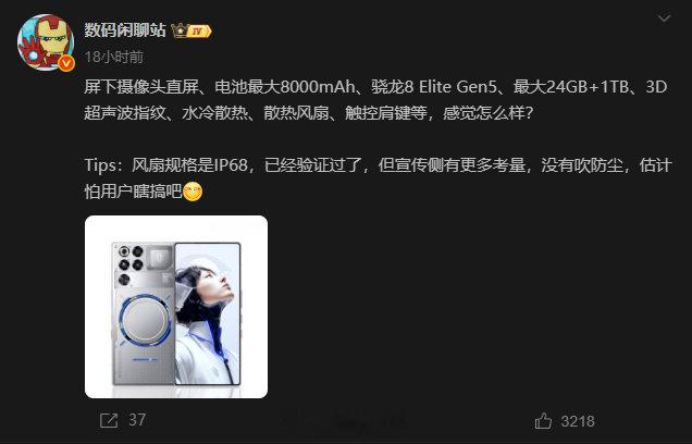 我觉得可能是红魔11Pro,要是它带防水和风扇,放水里能自己漂着回来,跟个小快艇似的。