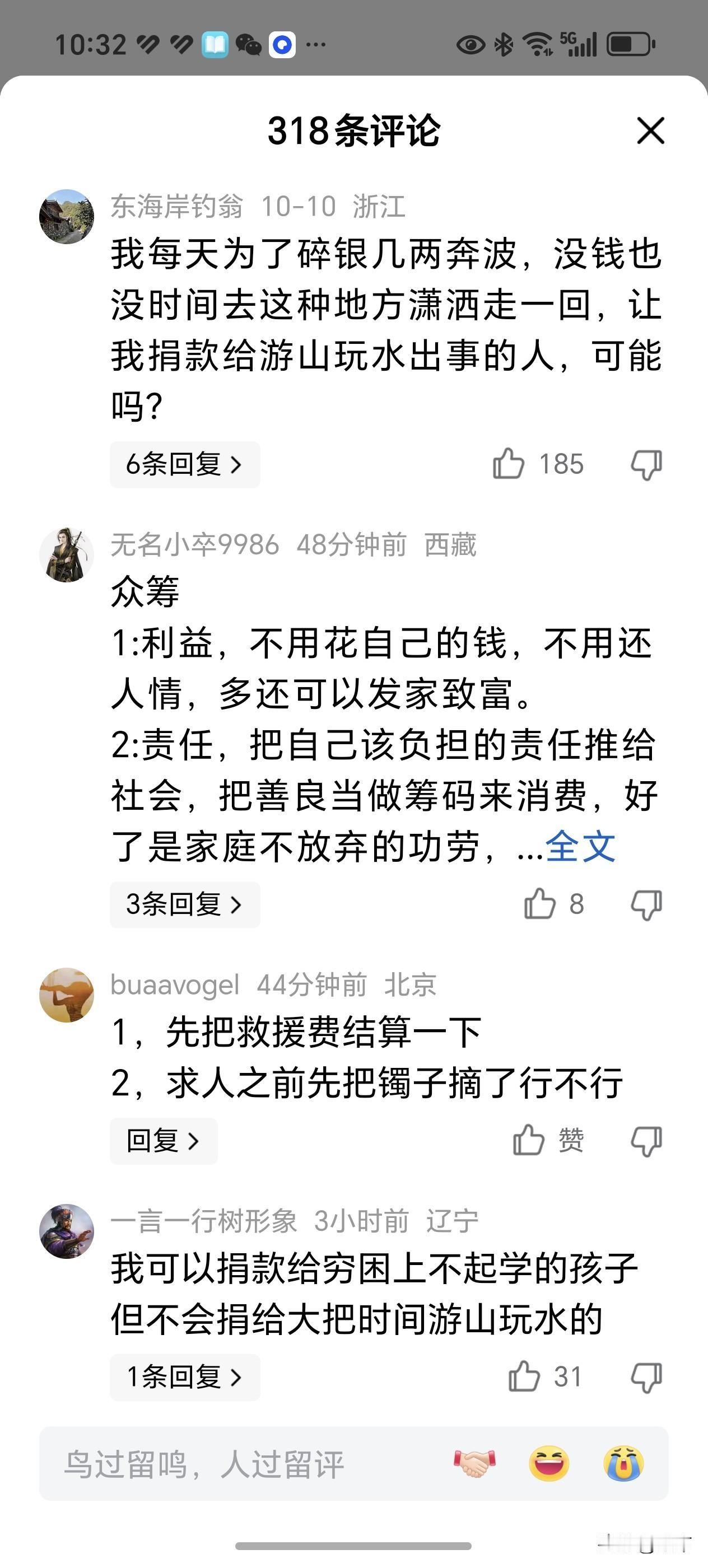 确实 刚看到说众筹就有点反感 谁的钱不是大风刮来的 谁也不是都有能力有条件去爬野的 日子过的这么舒坦 出了事就想着最大限度降低损失 我认为这是一种无赖的行为