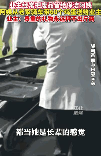暖心!江苏南京,男子经常把废品留给保洁阿姨。没想到,假期回来,在门口发现两袋土鸡蛋和一张纸条。他看了纸条后才知是保洁阿姨送的。他感叹: 贵重的礼物永远秤不出斤两。网友: 双向奔赴的善良。 原来,男子经常会把家里一些废纸盒和空瓶子,以及一些闲置物品放在他家门口,留给专门打扫他们这个单元的保洁阿姨,这位阿姨,他觉得比他母亲的年纪还要大。 而他平时见到这位保洁阿姨也会给打招呼,当都她是长辈的感觉,有时候他出去扔垃圾,阿姨让他放门口就是,她帮忙带下楼。 这次国庆假期时,他回了老家,没想到他回来时,在自己家门口看到了两袋子鸡蛋,其中一个袋子里还有一张纸,上面写着字。 纸条没标点,歪歪扭扭几行—— “小伙子,回家过节好。鸡蛋是老家带来的,土货,不值钱,给你补补。你平时给的瓶子,我都换成钱了,给我孙子买了书包。谢谢你。” 男子读完,心里“咚”地一声,像被热水袋捂了一下。他蹲在门口,把两袋鸡蛋掂了掂,沉甸甸的,塑料袋勒得手指发白发红。那一刻他突然明白:自己随手攒的废纸盒,在阿姨眼里不是垃圾,是“情分”。 他把鸡蛋拎进屋,发现颗颗都擦得发亮,有的还沾着稻草屑。他想起小时候在乡下,外婆也这么擦鸡蛋,说“送人东西要干净,不能让人嫌弃”。一瞬间,保洁阿姨的模样和外婆重叠:花白头发、微驼的背、总挂着围裙的腰。 第二天电梯里碰见阿姨,她有点不好意思,搓着手说:“鸡蛋没坏吧?我攒了半个月,怕放坏了。”男子连忙摇头:“好得很,我煮了六个,蛋黄都是橙的。”阿姨笑得眼睛眯成一条缝,脸上的褶子像扇子一样打开。他忽然觉得,这条电梯里装满了春天。 他把这事发在网上,配图是两袋鸡蛋和那张纸条。本想着记录一下,没想到炸了锅—— “我哭死,这比我妈给我寄的月饼还重。” “秤确实称不出,一称就把良心称没了。” “双向奔赴的善良,谁羡慕了我不说。” 评论里还有人讲起自己的“阿姨”: “我给门卫大叔两瓶啤酒,第二年他帮我挪了整整一冬天的车。” “我把旧电脑给了楼下收废品的大哥,他后来给我扛了三个月快递上六楼。” 一条接一条,像接力赛,把人心里的热乎劲儿全勾出来了。有人却泼冷水:“几斤鸡蛋换一堆废品,值几个钱?至于感动成这样?”底下立马被怼回去:“你懂啥,这叫以心换心,超市能买到鸡蛋,买不到惦记。” 男子也看到了这条,他没回怼,只是又发了一条动态: “鸡蛋吃完了,壳没扔,洗净晒干,碾成粉,给阳台的绿萝施肥。阿姨给的养分,让叶子长得贼绿。废品能换钱,真心能换命,谁再说‘不值钱’,我把绿萝端给他看。” 我看完这个故事,专门跑去找他聊。他跟我说了件小事:国庆后第二场雨,降温得厉害,他在小区门口看见阿姨没伞,就把自己多出来的一把折伞递过去。阿姨撑开伞,发现伞面上印着某保险公司的广告,她笑着说:“这伞好,晴天也能用,挡太阳。”然后顺手把伞往他这边倾了倾,自己半个肩膀露在雨里。那一刻,他说自己差点没出息地红了眼。 我忽然懂了:善良不是惊天动地,是“你替我带垃圾下楼,我替你挡雨湿肩”的来回。它不需要宏大叙事,只要一点点把“我”缩小,把“我们”放大。就像阿姨纸条上没写一个“爱”字,却句句都是“我记着你”。 故事到这里本该收尾,但生活没停。男子告诉我,他准备把阳台那盆绿萝分枝,送阿姨一盆,再附上一张新纸条: “阿姨,春天来了,咱们一起养点绿。” 你看,循环又开始了——鸡蛋变绿萝,绿萝变陪伴,陪伴又会在某个清晨开出新的花。谁说善良不能繁殖?它可比病毒快多了,一传十,十传百,最后把整个城市都染成暖色调。 各位读者你们怎么看?欢迎在评论区讨论。