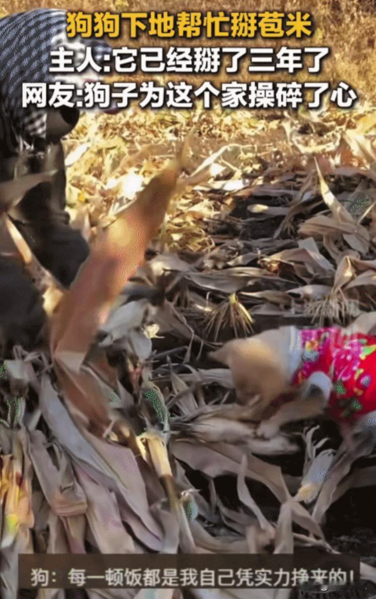 “太有灵性了!”黑龙江,女子去地里掰玉米,狗子也跟着去了,她以为它是去玩的,没想到,狗子到了地里,还没等她下地,狗子竟然直接上嘴,咬断玉米杆后,还把玉米剥了出来!接着又去掰下一个,这一幕把女主人都看懵了!养了这么久,还不知道狗子居然有这个技能!网友:狗子为这个家操碎了心。 黑龙江一到秋收,地里的玉米杆长得比人还高,金灿灿的棒子垂着,看着就喜人,前段时间,当地有个大姐想着趁天气好,去自家玉米地把熟了的玉米掰回来,家里养的狗子也跟在屁股后面,颠颠儿地跑,尾巴摇得像个小扇子。 大姐一开始没当回事,以为这狗就是闲不住,想跟着去地里蹭玩,说不定还会到处瞎跑追蝴蝶,哪成想,接下来发生的事儿,直接把她看懵了,这狗哪是去玩的,分明是来帮忙干活的,简直 “太有灵性了!” 大姐刚把装玉米的筐子放在地头,还没来得及弯腰掰第一根玉米,就看见狗子 “嗖” 地一下窜进了玉米地,动作麻利得很,她还喊了一声 “别乱跑,小心扎着”,结果话音刚落,就看见狗子对着一根长得特别高的玉米杆下嘴了。 它不是瞎啃,而是精准地咬住了玉米杆中间最细、最脆的地方,然后身子往后一坠,借着体重的劲儿往下拽,“咔嚓” 一声,玉米杆就被它拉倒了,那股子巧劲不像是瞎使劲,倒像是琢磨过怎么省力似的。 大姐当时就站在原地没动了,眼睛盯着狗子看,接下来更令她惊愕之事发生了,玉米杆倒地,狗子迅即用前爪牢牢按住,使其不再晃动,随后它低头用牙齿缓缓将玉米棒子从杆上剥离,动作小心翼翼,未让棒子破碎半分。 撕下来之后它还不算完,居然开始用嘴啃玉米外面的绿壳,一圈圈地啃,把里面黄澄澄的玉米粒露出来啃得还挺干净,偶尔有几片碎壳粘在上面,它还会用爪子扒拉掉。 等处理好这根玉米,狗子叼着剥干净的棒子,跑到地头,把它放在大姐的筐子旁边,然后又扭头冲回玉米地,找下一根高玉米杆去了,整个过程一气呵成,没半点犹豫就像训练过千百遍似的。 大姐这才反应过来,赶紧掏出手机,一边拍一边心里直犯嘀咕:“养了这么久,咋不知道它还有这技能?这也太神了!” 后来大姐算了算,狗子一个小时下来,居然处理了二十多个玉米,比她刚开始掰的速度都快。而且它还挺会挑,专挑那些长得高、玉米棒子大的下手,像是知道这些杆儿难掰,特意帮着分担似的。 大姐说,这狗是 2021 年从外面捡回来的流浪狗,当时看着可怜就收养了,2022 年秋天开始,它就总跟着去地里,一开始只是在旁边待着,没想到慢慢就自己学会干活了,没人教过它,估计是看家里人掰玉米辛苦,自己默默观察,就琢磨出了这套 “流程”。 现在每次去地里,狗子比谁都积极,有时候大姐还没起床,它就扒着门想出去,好像知道要去干活似的,大姐把拍的视频发到网上,网友们都炸了,评论区里全是 “这狗子太有灵性了!” “简直是来报恩的,为这个家操碎了心” 的留言,还有人说 “必须给它加餐,鸡蛋、火腿、鸡腿安排上,这么能干的狗,得吃好点!”,甚至有人开玩笑说 “对比我家那只只会躺沙发的猫,这狗也太卷了,连宠物都开始养家了”。 其实大姐心里也暖洋洋的,她说这狗不光能干,平时还特别黏人,家里人回来晚了它会在门口等,谁生病了它会趴在床边陪着,现在看着它在玉米地里忙前忙后的样子,更觉得这狗通人性,它不是为了讨口吃的才干活,更像是把自己当成了家里的一份子,想帮着分担辛苦。 (信息来源:上游新闻)