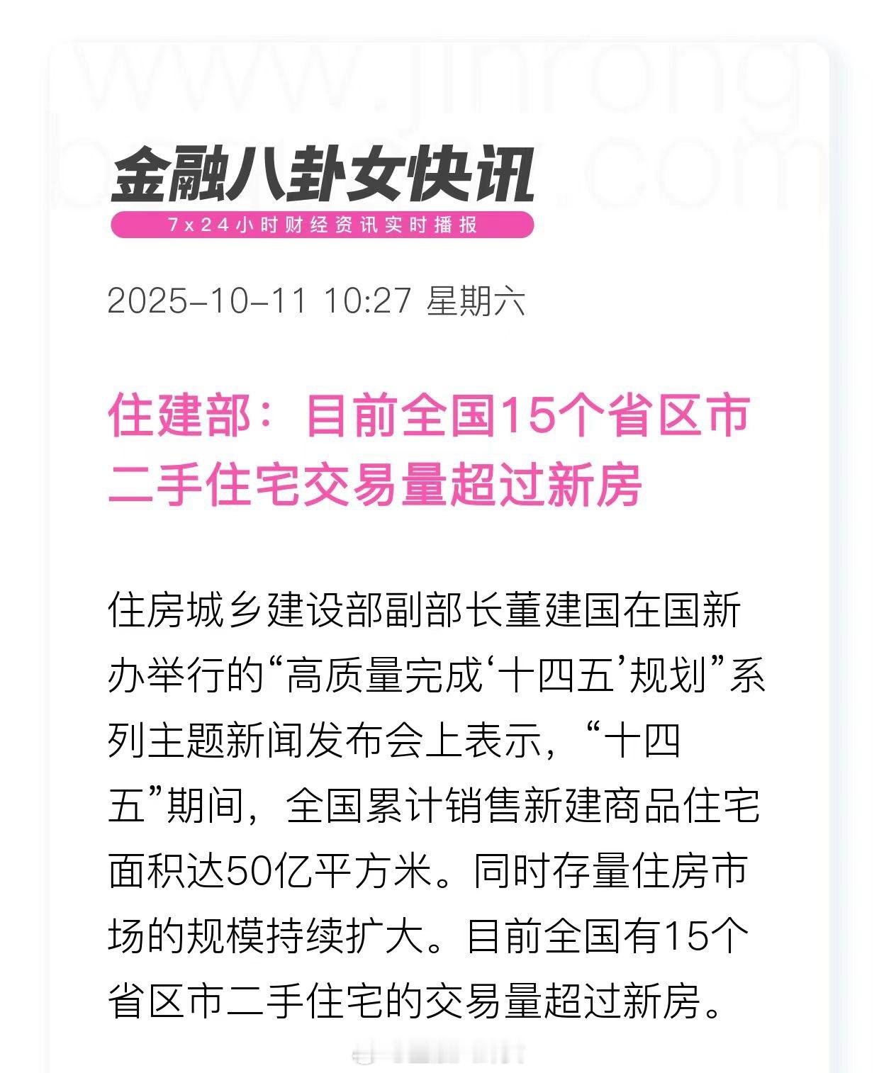 住建部:目前全国15个省区市二手住宅交易量超过新房