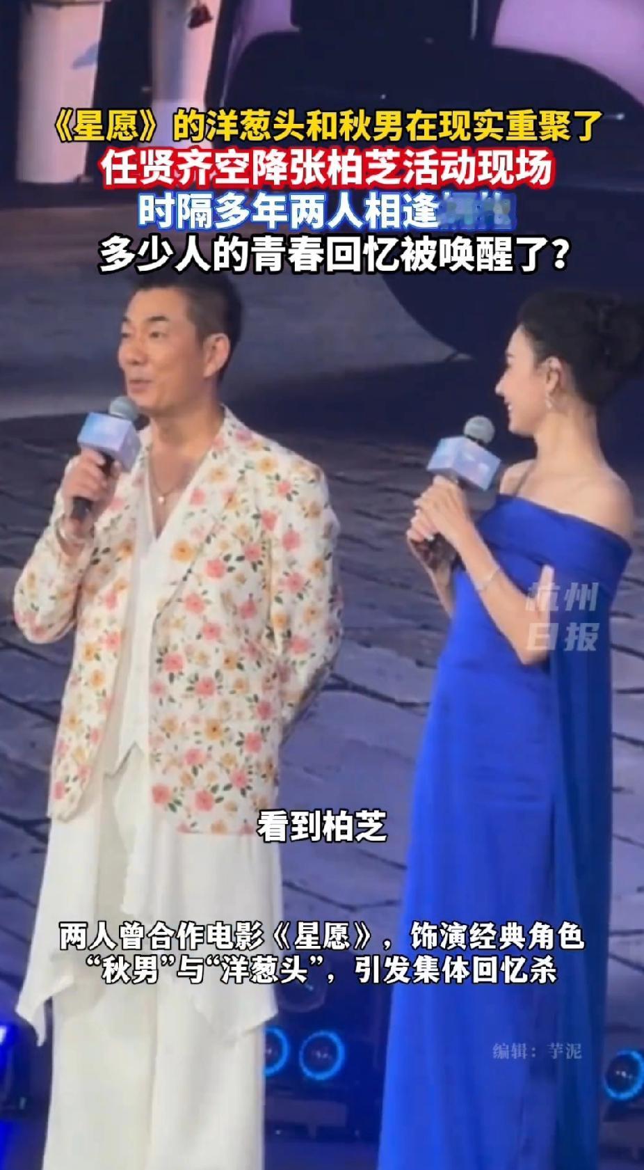 爷青回!任贤齐空降张柏芝杭州活动现场,《星愿》CP 世纪同框拥抱引回忆杀 谁的青春 DNA 动了?!张柏芝杭州活动现场,任贤齐惊喜空降,这对《星愿》里的“洋葱头”和“秋男”时隔多年重逢拥抱,瞬间把无数人的青春回忆拉满!当年的经典画面仿佛就在眼前,这波联动太绝了~张柏芝 任贤齐