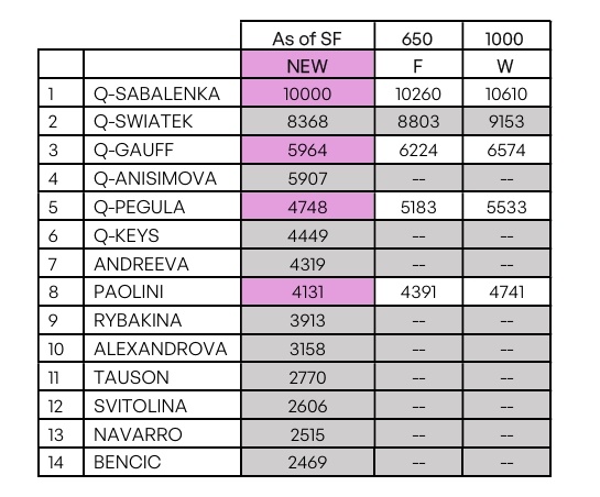 - 闯入武网四强后,高芙在积分榜上反超阿尼西莫娃,重回第三位。