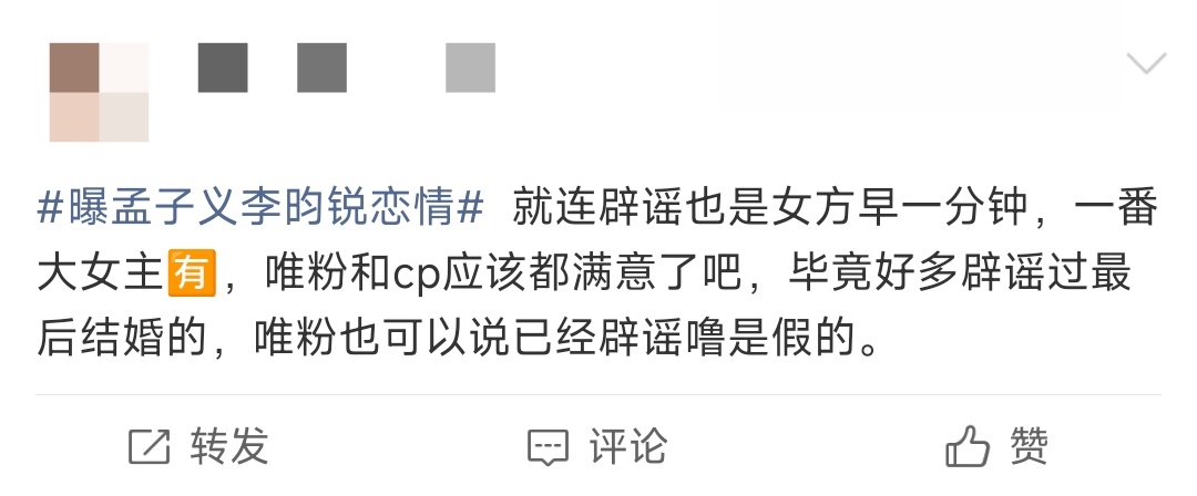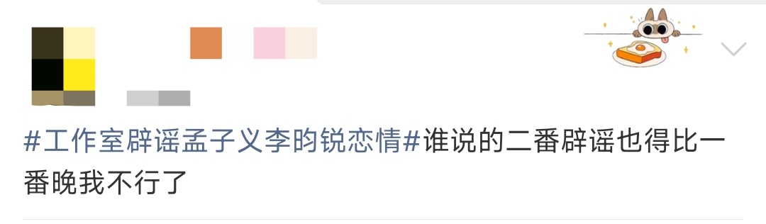 救命🆘,孟子义李昀锐大早上就被曝恋情,随后工作室双双光速辟谣,结果辟谣都是一个51分一个52分,严格遵守一番二番顺序,就连辟谣都是孟姐一番👍🏻,知道大女主的地位了,期待孟姐的作品吧~十一刷到宝了