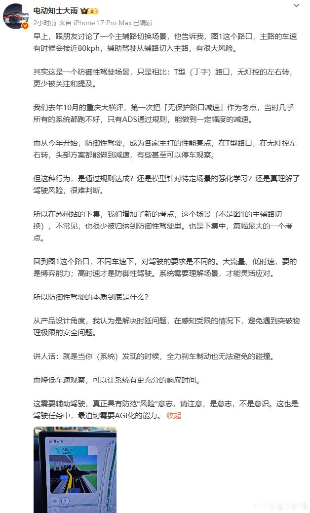 降低车速,不仅是让系统有更充分的响应时间,也是让路面其他交通参与者有观察到你的时间。如果不减速突然一下冲出去,其他交通参与者也反应不过来。