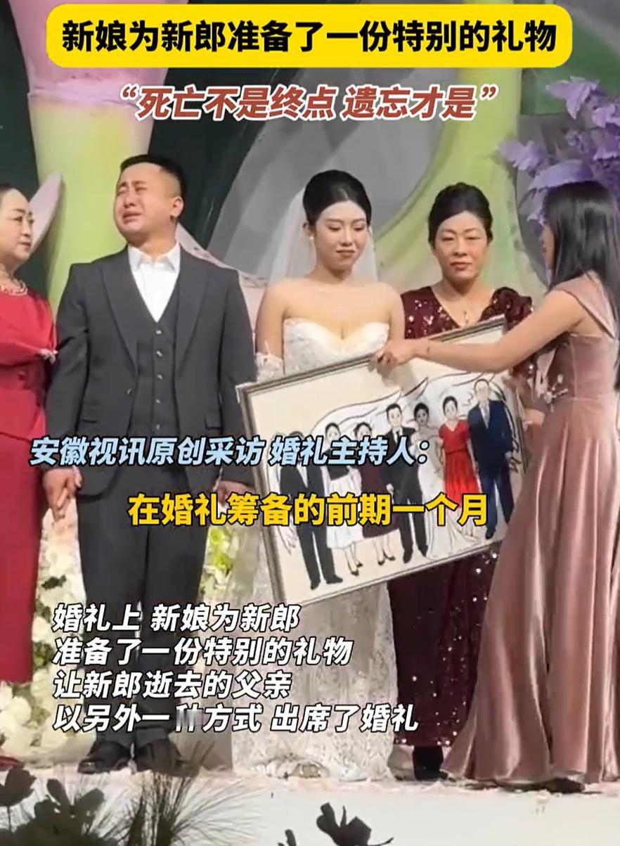“破防了!” 黑龙江,一对新人的婚礼上,新郎的父亲已去世,现场主持人提出一家人拍