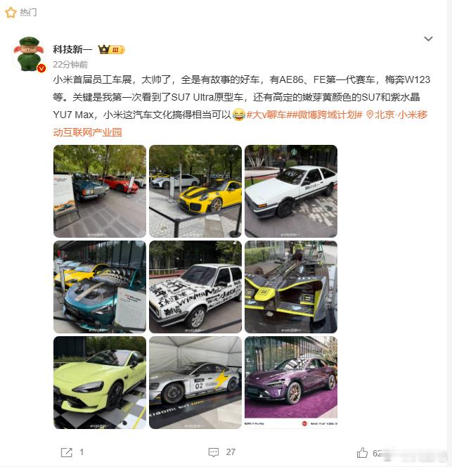 小米将举办首届员工车展 挺好,小米汽车对汽车文化是有贡献的。这一点也是雷总一直想强调的,那么绿色牌照什么时候可以优化一下~